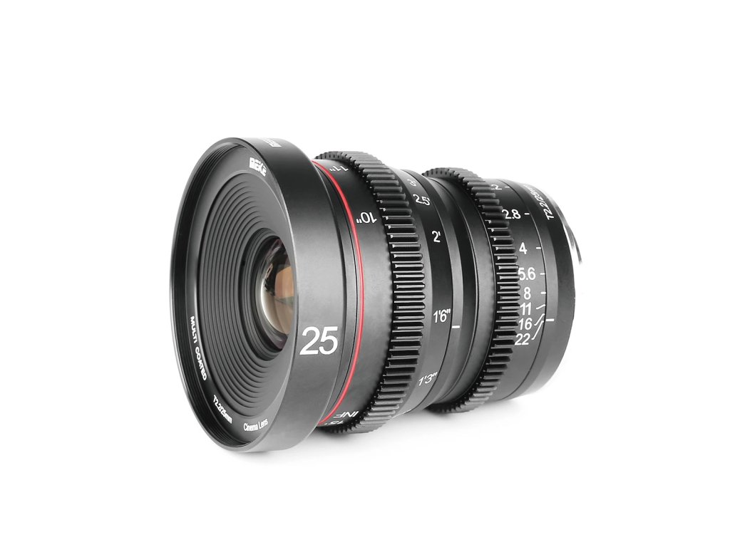 Obiectiv cine complet manual cu deschidere mare T2.2 și distanță focală de 25 mm. Lentila oferă o imagine clară cu erori de culoare minime și o redare lină a imaginii dincolo de adâncimea câmpului, un efect de „respirație” suprimat și o mișcare lungă a inelului de focalizare (270°) cu o angrenare M0.8 și semne de precizie (precizie aprox. 10"; angrenaj și la inelul de deschidere).Varianta pentru baioneta X Mount