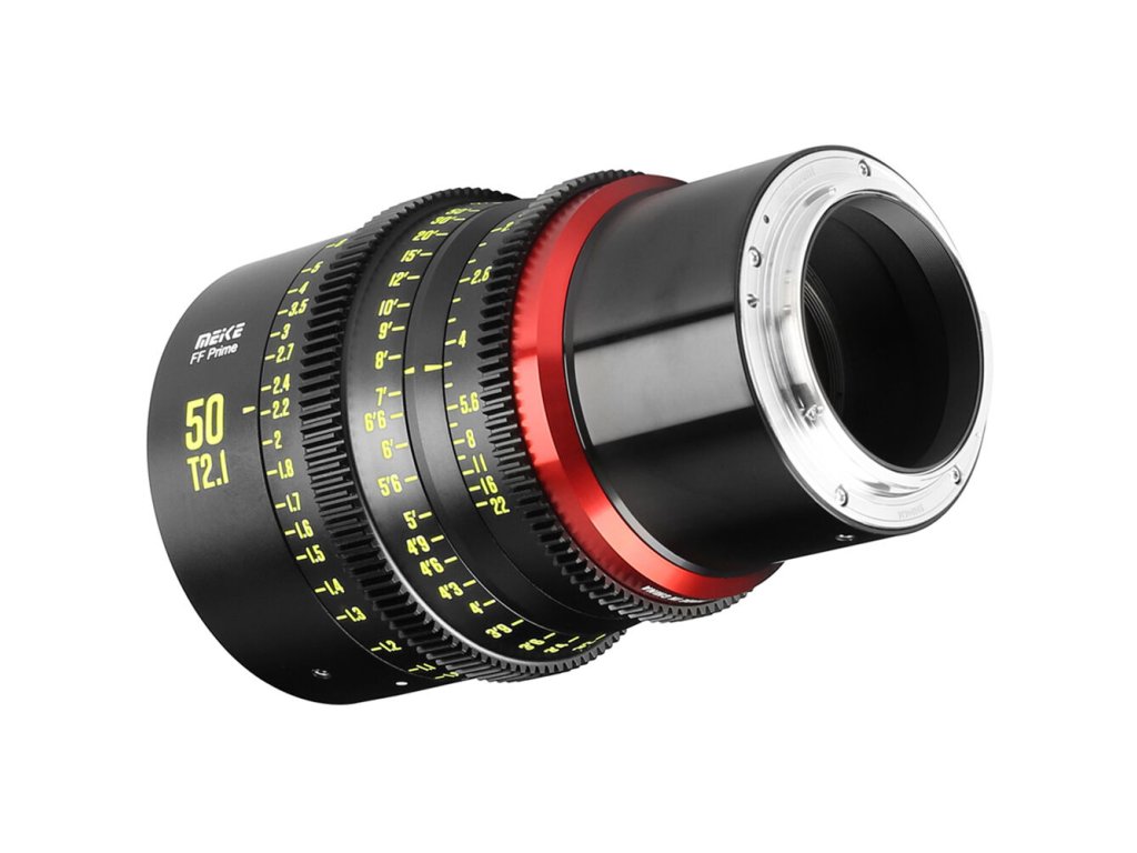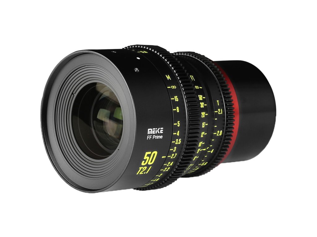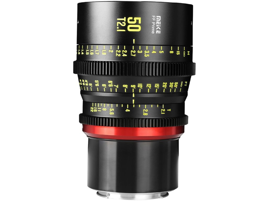 Obiectiv Meike 50mm T2.1 din seria FF-Prime Cine. Cu un cerc de imagine de 45 mm, acest obiectiv este compatibil cu camerele Full Frame și este disponibil într-o varietate de monturi de obiectiv, inclusiv PL/EF/RF/E/L/Z. Are roți dințate standard de 0,8 mm pe inelele de focalizare și deschidere. Designul obiectivului Meike 50 mm T2.1 FF-Prime este format din douăsprezece elemente în opt grupuri și un mecanism de deschidere format din 11 lame de deschidere. Distanța minimă de focalizare este de 60 mm. Compatibil cu Canon C700, Sony VENICE, Alexa LF, Z Cam E2-F6, Mavo LF, toate Sony, Panasonic, Canon, Sigma și Leica full frame mirrorless, toți senzorii Super 35/APS-C.