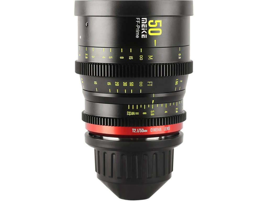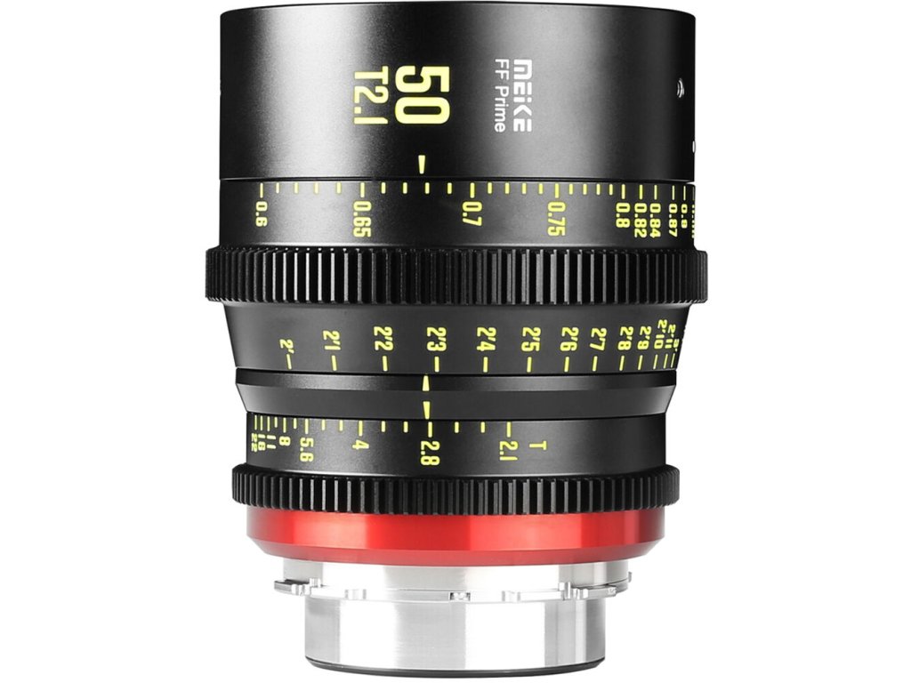 Obiectiv Meike 50mm T2.1 din seria FF-Prime Cine. Cu un cerc de imagine de 45 mm, acest obiectiv este compatibil cu camerele Full Frame și este disponibil într-o varietate de monturi de obiectiv, inclusiv PL/EF/RF/E/L/Z. Are roți dințate standard de 0,8 mm pe inelele de focalizare și deschidere. Designul obiectivului Meike 50 mm T2.1 FF-Prime este format din douăsprezece elemente în opt grupuri și un mecanism de deschidere format din 11 lame de deschidere. Distanța minimă de focalizare este de 60 mm. Compatibil cu Canon C700, Sony VENICE, Alexa LF, Z Cam E2-F6, Mavo LF, toate Sony, Panasonic, Canon, Sigma și Leica full frame mirrorless, toți senzorii Super 35/APS-C.
