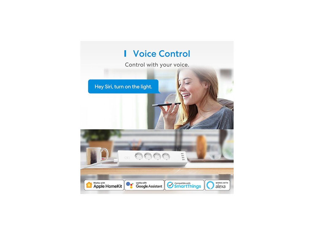 Meross Smart Wi-Fi Power Strip 4AC+4USB Apple Homekit - Alb