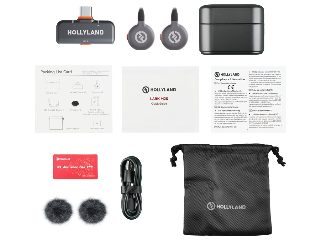 Microfon rever fără fir Hollyland LARK M2S Duo cu conector USB-C (Duo, gri spațial)