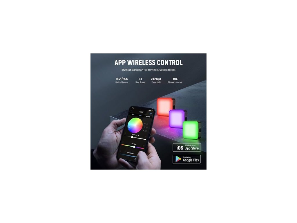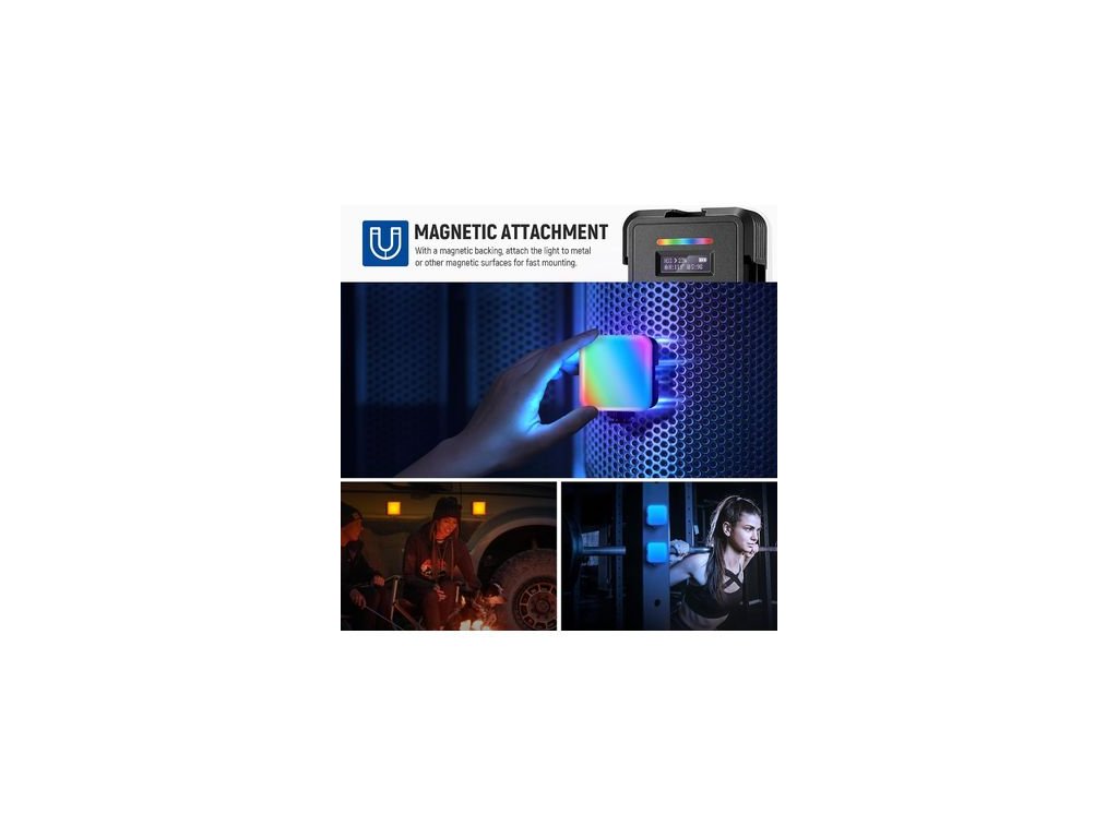 Lumină fotografică RGB62, 18x alb cald + 18x alb rece + 25 LED-uri RGB, intensitatea iluminării 800 lux/ 0,5 m, indice de redare a culorii și calitatea luminii CRI 97+Parametri suplimentari