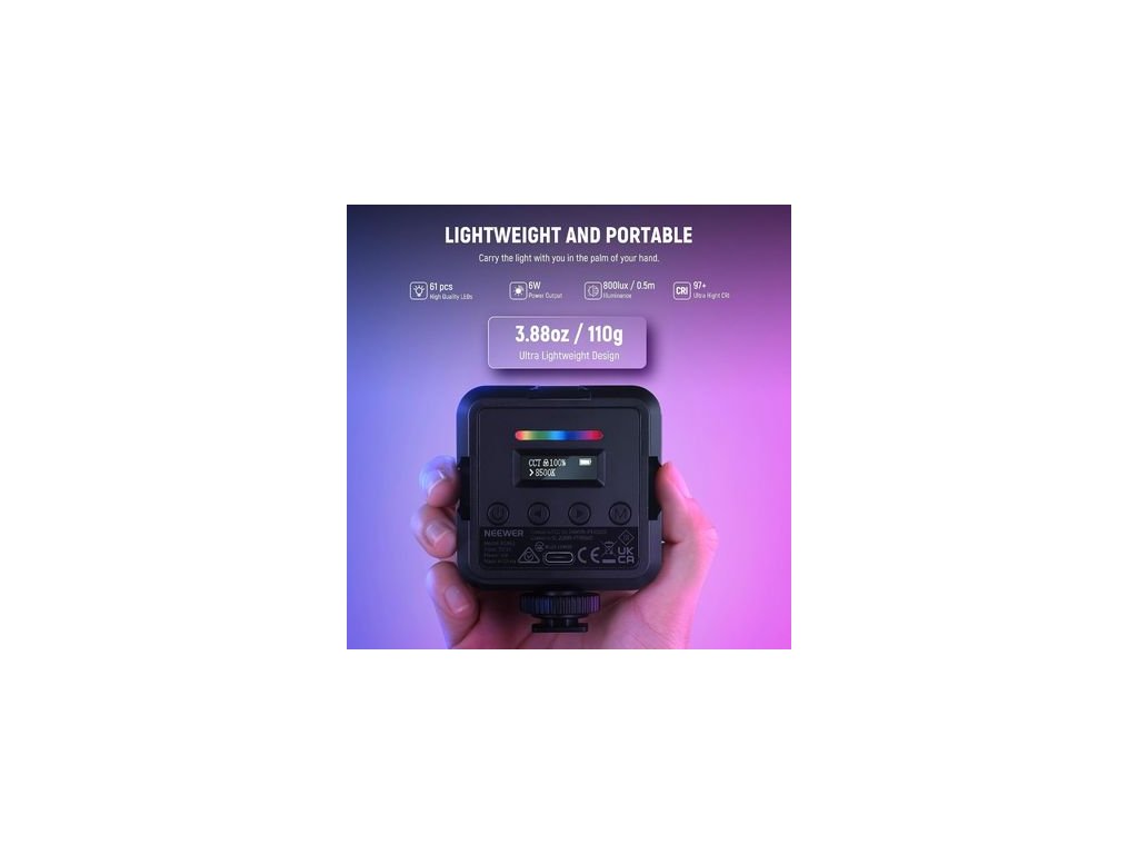 Mini lumină foto permanentă Neewer RGB62, 61 LED-uri RGB ultra luminoase, 6W