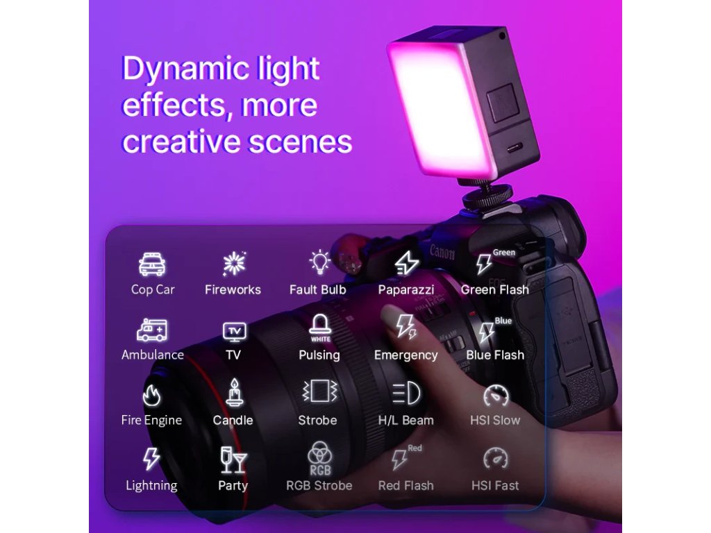 - Raport excelent calitate-preț: VL49 Pro RGB este o versiune îmbunătățită a modelului VL49 RGB. Este o lampă video RGB accesibilă și compactă. Ideală pentru interviuri, vloguri, streaming sau înregistrare video.