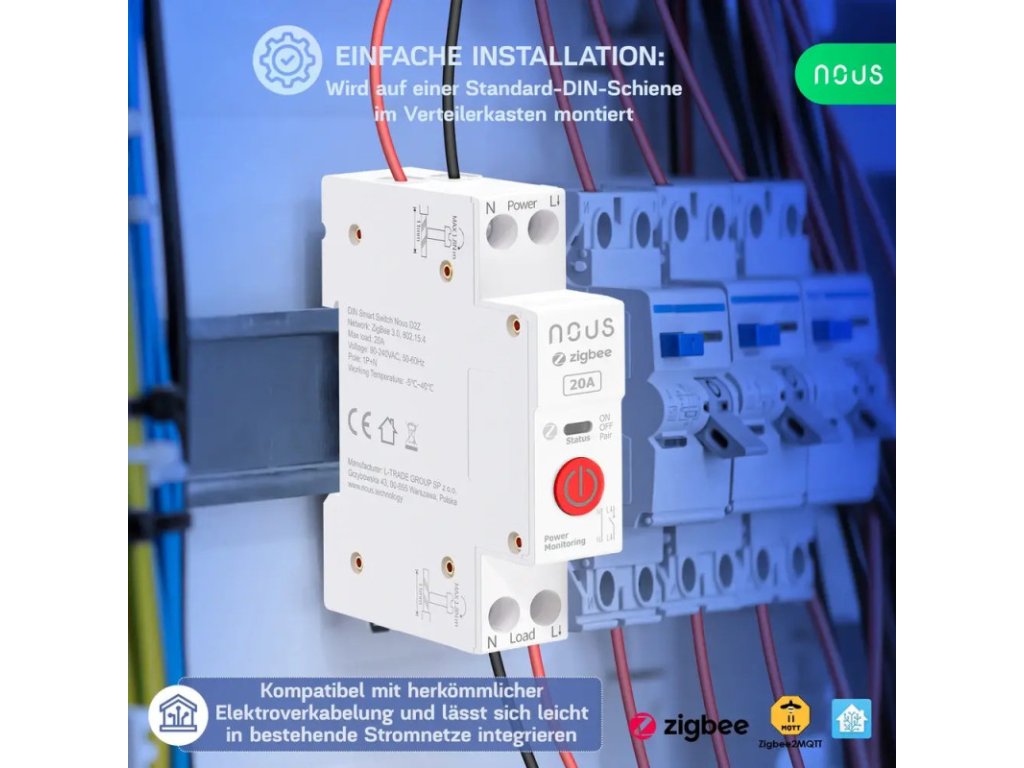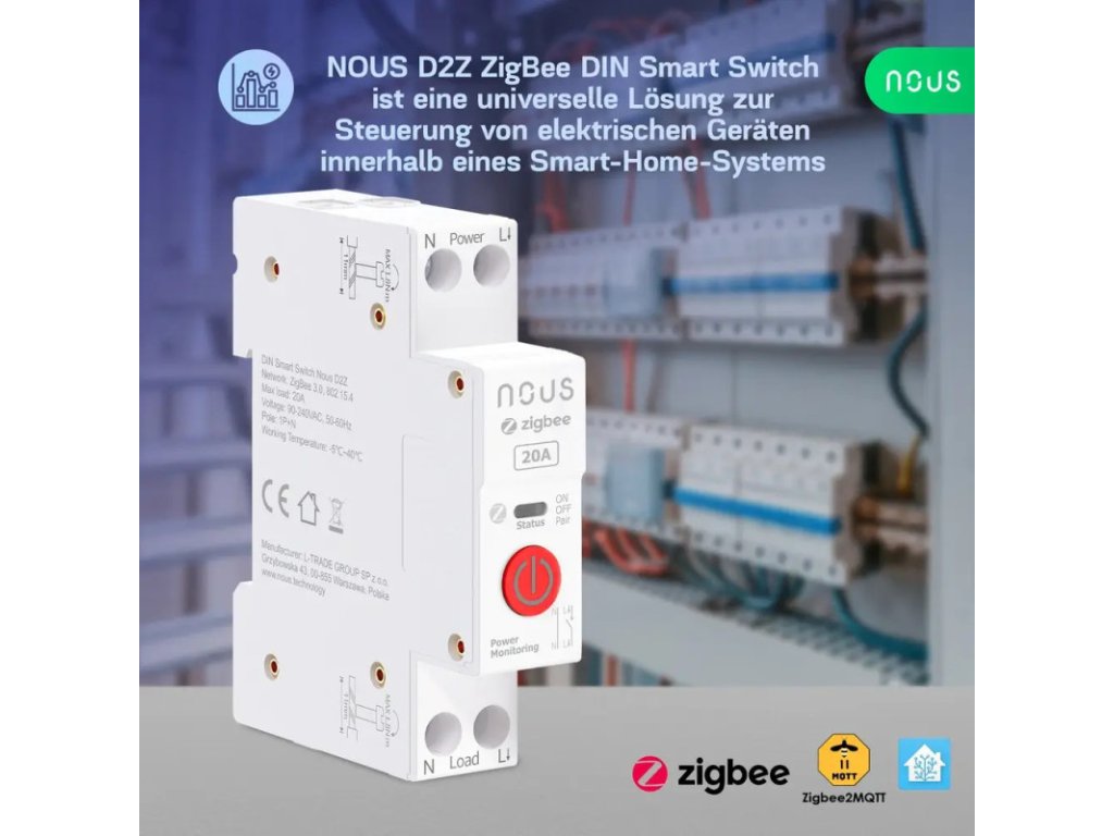 Modul de comutare inteligentă Nous D2Z Zigbee DIN 20A (1 canal, cu măsurare consum)