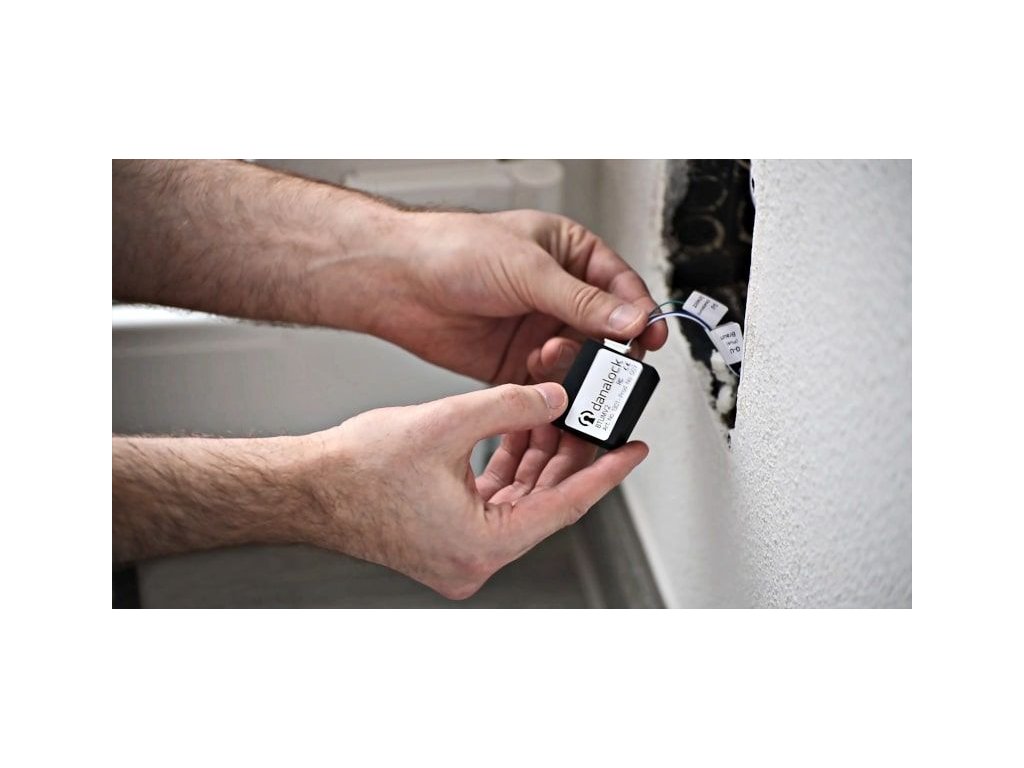 Unitatea conectată la un modul universaldeschideți ecranul telefonului cu o singură atingere. După instalarea în distribuția electrică, modulul este suficientpentru a asocia o dată cu aplicația. Controlați și verificați deschiderea/pornirea prin aplicația Danalock.