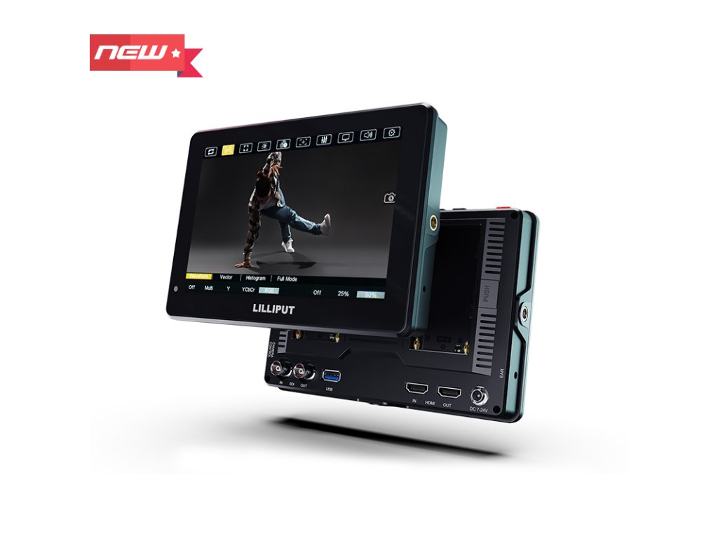 Monitorizați înregistrările camerei 4K cu monitorul Lilliput de 7 inchi de control al camerei Monitor HT7S cu control al camerei LANC. HT7S este echipat cu intrări 3G-SDI și HDMI 2.0, ceea ce îl face potrivit pentru filmarea și fotografierea DCI 4K24 și UHD. Folosind cablul LANC inclus, puteți controla diferitele funcții ale camerei de pe ecranul tactil Panoul LCD cu raportul de aspect de 2000 cd/m2 și raportul de contrast de 1200: 1 afișează o imagine Full HD nativă la o rezoluție de 1920 x 1200. Ieșire în buclă. Funcția HDMI permite ieșirea prin 3G-SDI sau HDMI către orice alt dispozitiv compatibil.