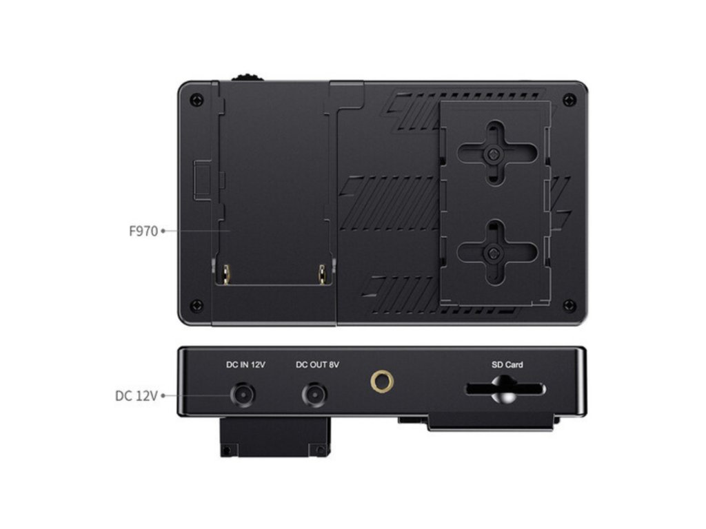 Pe partea din spate a monitorului este adăugat un kit extern de instalare și alimentare Sony F970. Kitul extern poate fi folosit pentru a instala și instala echipamente externe precum transmisie wireless, lumină LED, convertor video și altele care pot fi alimentate de bateria Sony F970. Acest design inovator de alimentare externă satisface nevoile de alimentare ale transmisiei wireless externe, luminii LED și altor dispozitive, economisind foarte mult spațiul ocupat de dispozitiv și reducând greutatea echipamentului fotografic.