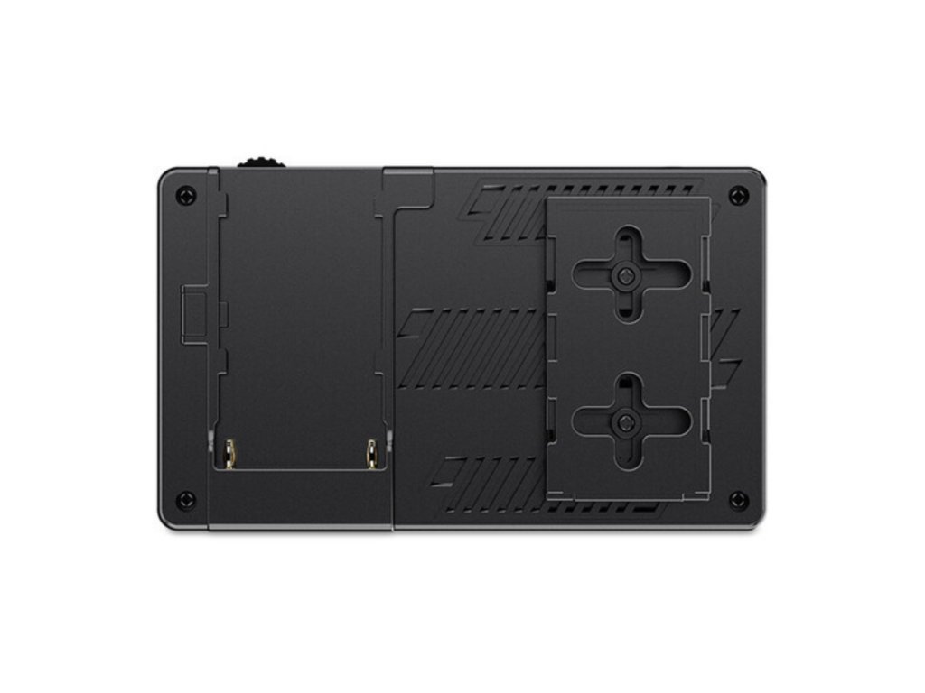 Partea din spate a monitorului este echipată cu un slot pentru baterie care poate fi montat pentru bateriile standard Sony seria NP-F pentru a asigura o putere de lungă durată pentru ecranul tău luminos!