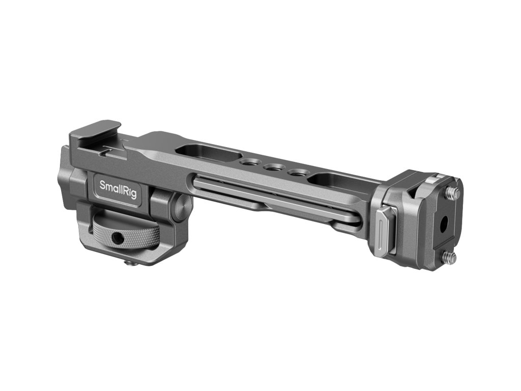 Rýchloupínacia lišta NATO Rail umožňuje rýchlu montáž a demontáž podpery.Vrchná časť podpery je vybavená tromi otvormi so závitom 1/4"-20, ktoré uľahčujú pripevnenie ramena SmallRig Magic Arm 4194 na pripojenie akčných kamer alebo vysielačov obrazu.