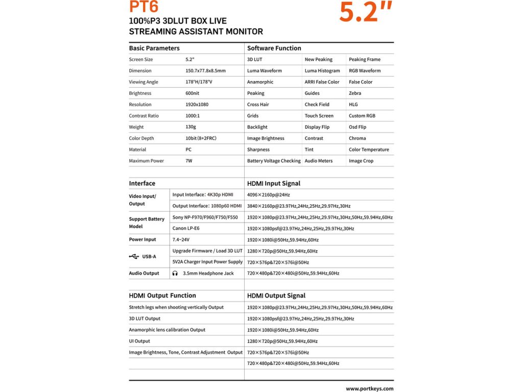 Monitor tactil PortKeys PT6 6" 4K HDMI