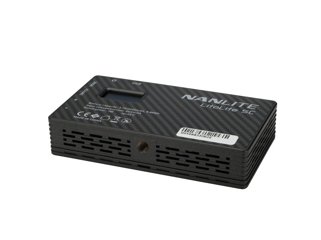 Bateria reîncărcabilă încorporată permite ca panoul să fie operat în orice locație, indiferent de disponibilitatea energiei. Bateria oferapână la 90 de minute de funcționare la luminozitate maximă și durează până la 19,5 ore la luminozitate de 10%. Puteți alimenta panoul folosind orice sursă USB-C, inclusiv un power bank, datorită căruia puteți prelungi timpul de funcționare.LitoLite 5C este suficient de mic pentru a încăpea în orice geantă pentru cameră. Corpul magnetic și filetul de 1/4"-20 situat la baza panoului oferă flexibilitatea de a monta lumina aproape oriunde.