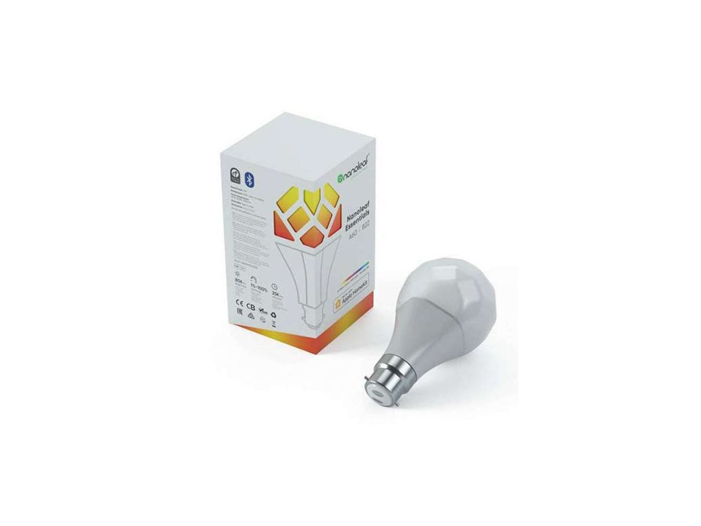 Bec inteligent B22 - 16 milioane de culori în nuanțe calde relaxante și cele reci de susținere - cea mai strălucitoare lumină albă cu o gamă extinsă de temperatură Vivid White - filet B22 - iluminarea circadiană reflectă automat temperatura culorii în funcție de ceasul natural al corpului uman - gradare reglabilă cu un interval de 0-100% - control vocal - dupa conectarea la un sistem inteligent, posibilitatea de a seta actiuni automate - treziți-vă natural la culorile care imită răsăritul soarelui - comunicare prin Bluetooth și Thread (în prezent numai pentru iOS) - control simplu flexibil - compatibil cu Apple Home, Google Assistant, Amazon Alexa, IFTTT și SmartThings - Aplicația Nanoleaf pentru iOS și Android Parametri tehnici: - luminozitate medie: 806 lumeni - max. luminozitate: 1100 lumeni - temperatura de culoare: 2700-6500 K - canal de culoare: RGBCW - culoare: > 16 mil. - indice CRI: > 90 - consum de energie: 9W - modul mobil: 0,17 W (120 V), 0,26 W (230 V) - putere de intrare: 100 V - 240 V, 50/60 Hz (gamă universală) - durata de viata: 25.000 ore Dimensiuni: 6,1 x 11,1 cmParametri suplimentari