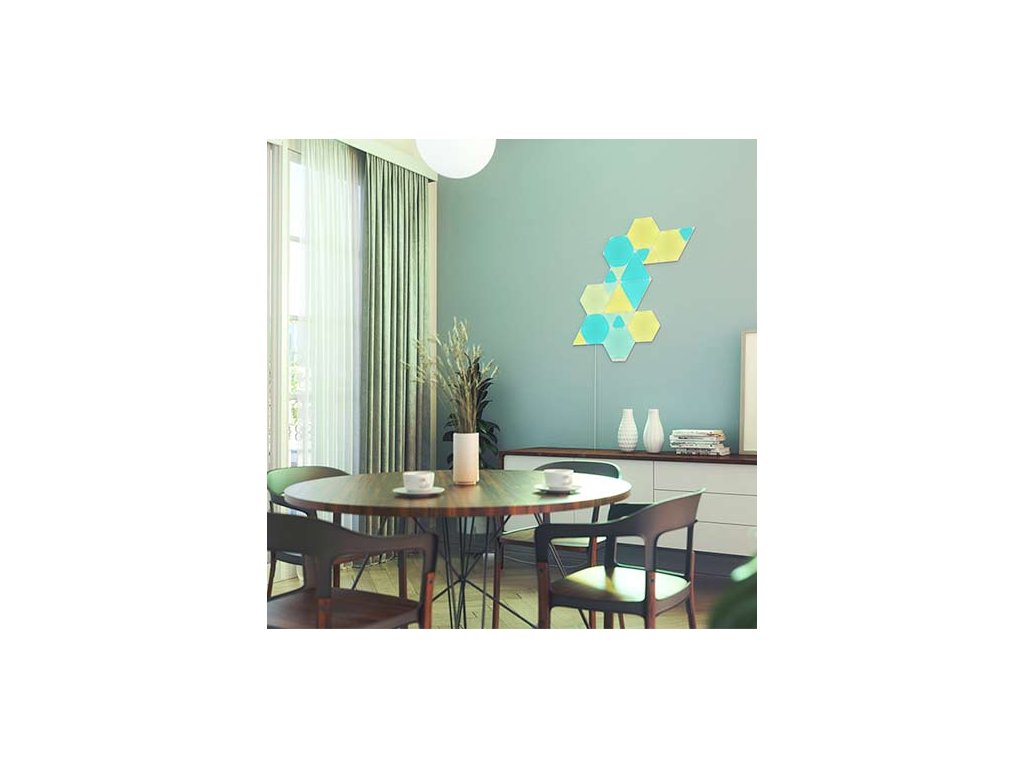 Iluminat modular inteligent - extinderea a 10 panouri luminoase la setul de baza - creează-ți propriul design - simetric, abstract, forme... - Tehnologia Connect+ - efecte de lumină impresionante cu posibilitatea de conectare cu muzica (Music Sync) - tehnologie exclusivă LayoutDetect™ pentru animații color inteligente bazate pe aspectul panoului dvs - control tactil prin atingerea panoului - posibilitatea de a juca jocuri interactive tactile - posibilitatea de a oglindi ecranul, atunci când culoarea panourilor se adaptează la culorile televizorului sau altui ecran (Screen Mirror) - peste 16 milioane de culori - posibilitate de atenuare prin aplicație, voce sau atingere - configurare simplă rapidă - asamblare cu bandă adezivă cu două fețe (inclusă în pachet) sau șuruburi (nu sunt incluse în pachet) - posibilitate de extindere prin panouri suplimentare in alte forme - se pot conecta la o sursa cca 21-77 de panouri (in functie de tip), pana la o putere de 42 W. - Aplicație Nanoleaf (iOS, Android, Mac, Windows) pentru setarea scenelor, culorilor, funcțiilor tactile sau modului pentru trezire naturală - comunică cu Apple HomeKit, Google Assistant, Amazon Alexa, IFTTT, SmartThings - Certificari UL, CE, RoHS, SAA, CQC KC, EAC, REACH Parametri tehnici: - flux luminos: 20 lumeni (1 panou) - durata bateriei: 25000 ore - temperatura de culoare: 1200 K - 6500 K - indice de redare a culorilor: 80 - număr de culori: peste 16 milioane - schema de culori: RGBW - tensiune: 110 - 240 V - putere max.: 42 W (pentru max. 77 panouri) - consum de energie: 0,54 W / 1 panou - protocol de comunicare: WiFi (2,4 GHz b/g/n) Pachetul conține: - 10 panouri luminoase in forma de triunghi - 10 plăci de montare - 11 bucăți de bandă adezivă cu două fețe pentru asamblare - 10 legături pentru conectarea panourilor și controlerului * doar o extensie a setului de bază, nu include sursa de alimentare și controlerul Dimensiuni: (1 panou) 11,5 x 10 x 0,6 (1) cm Greutate: (1 panou) 38,5 gParametri suplimentari
