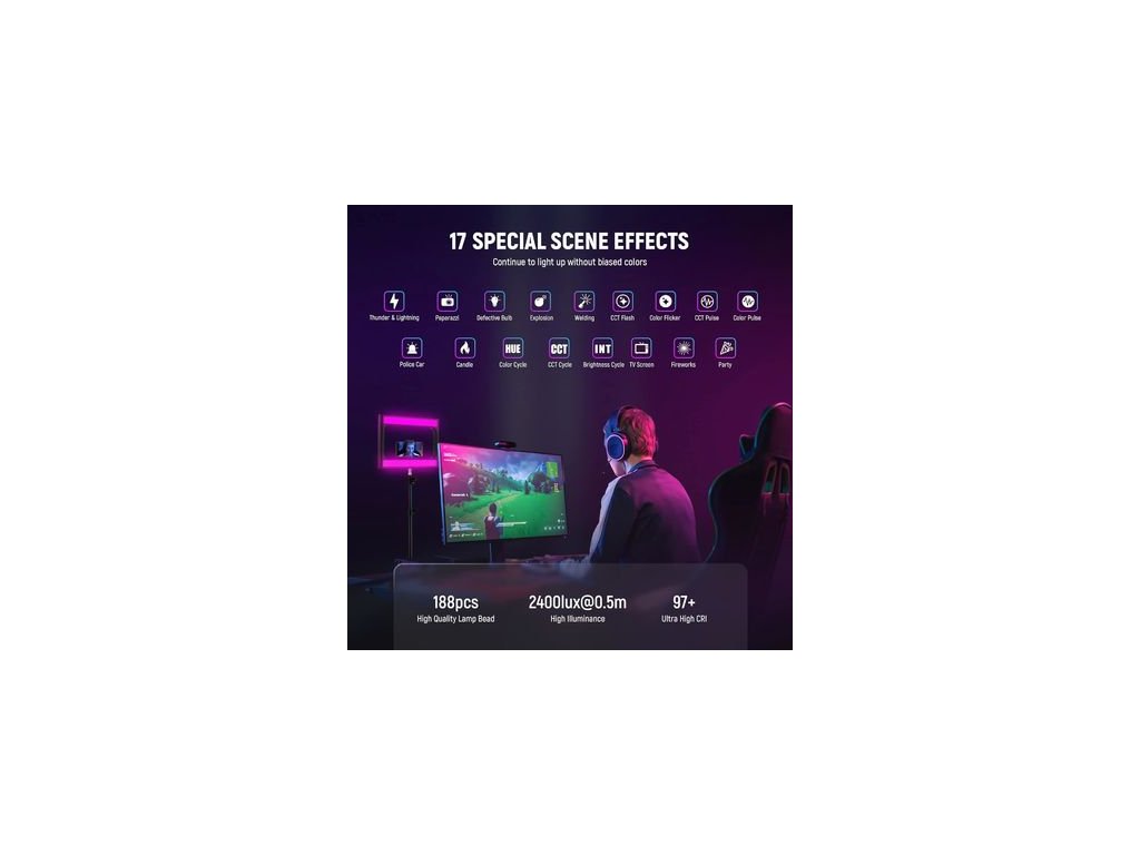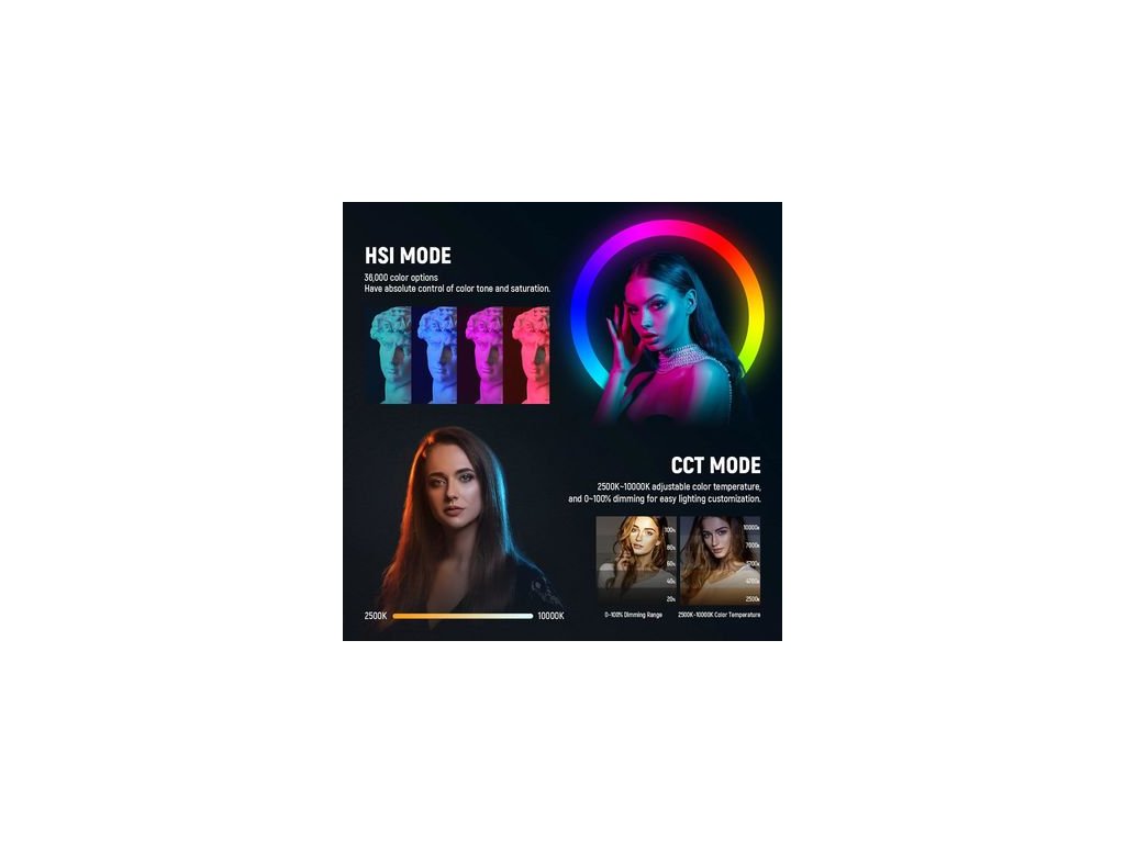 Cușcă de stabilizare cu LED RGB Neewer pentru filmări video și selfie-uri cu un smartphone, 188 LED RGB, 2400lux/0,5 m, CRI 97+, 2500-10000K, 20W, suport retractabil cauciucatParametri suplimentari