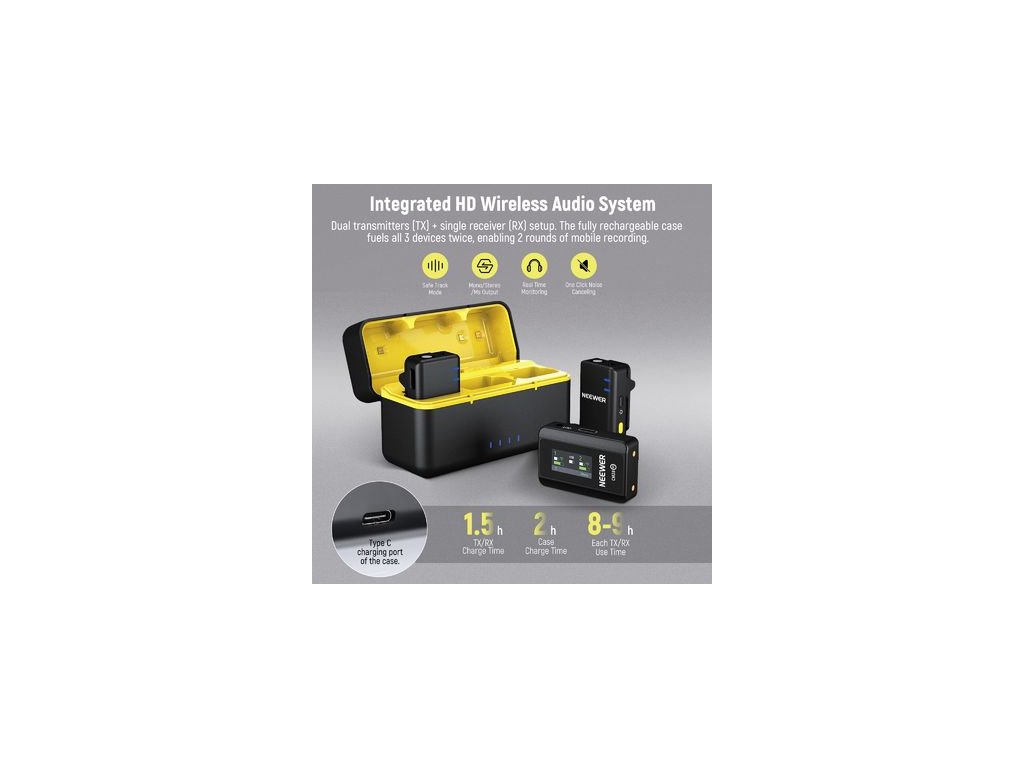 Neewer CM28 PRO, set de 2x microfon wireless rever, receptor și bază de încărcare