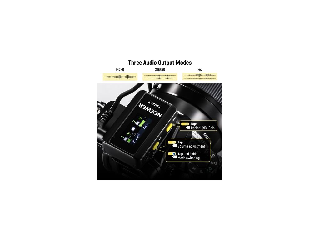 Neewer CM28 PRO, set de 2x microfon wireless rever, receptor și bază de încărcareParametri suplimentari