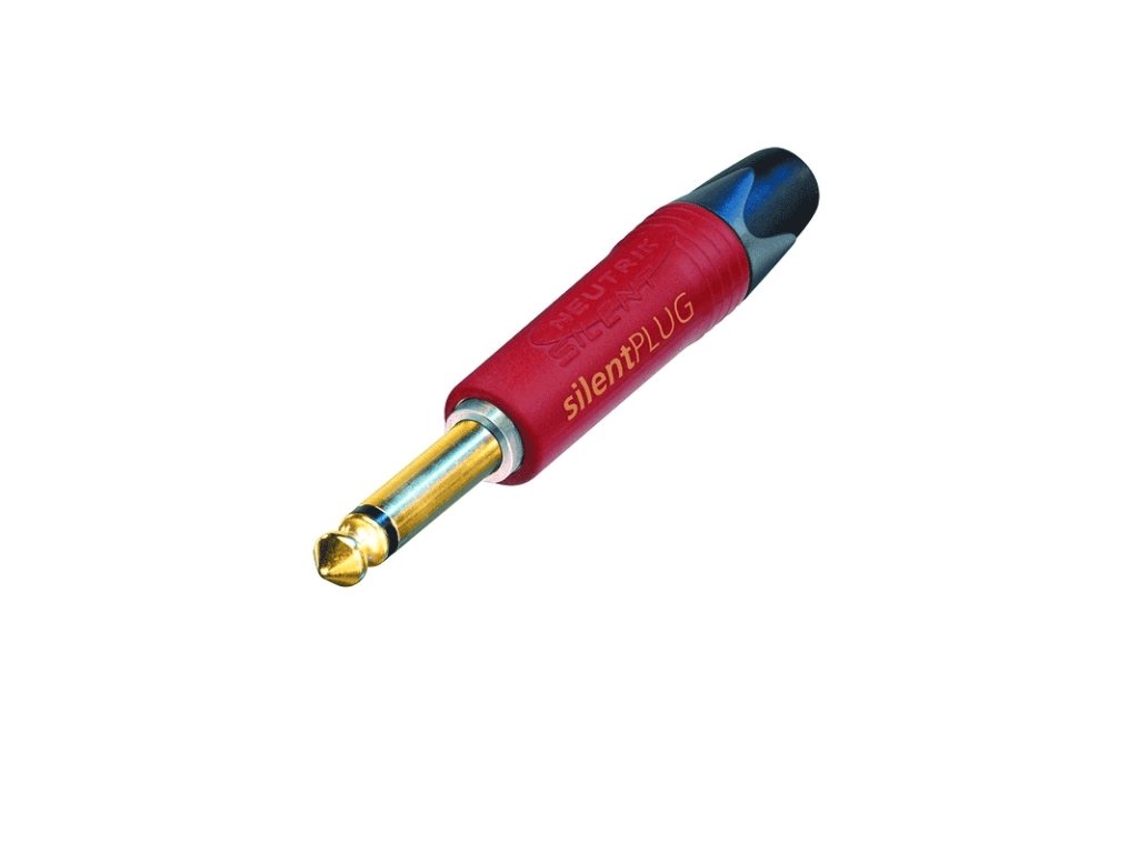 Neutrik NP2X-AU-SILENT -Fișă telefonică profesională cu 2 poli 1/4 inch, contacte placate cu aur, suprapunere din cauciuc roșu, comutator silențios