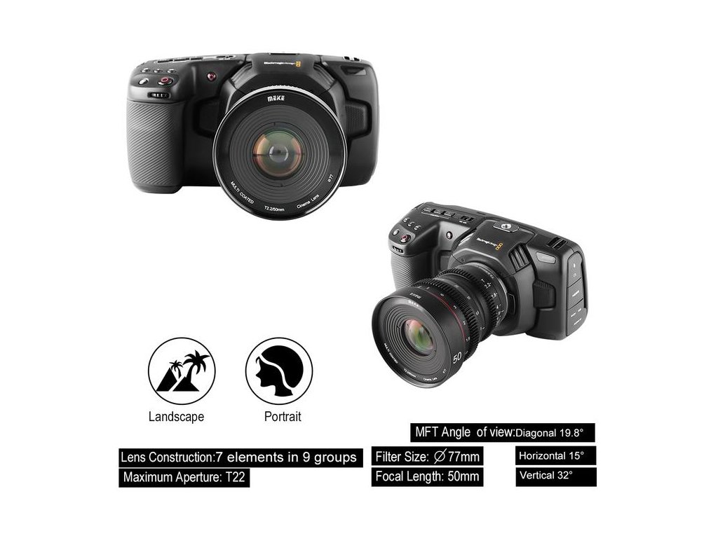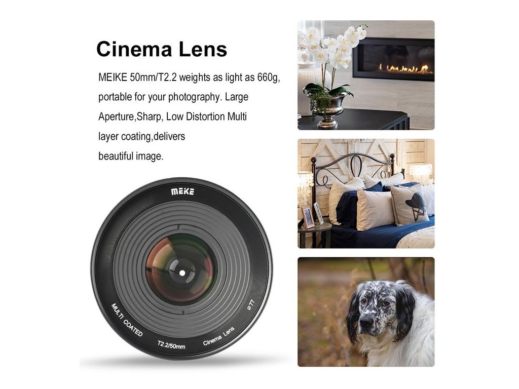 Obiectiv Meike Cine 50mm T2.2 pentru Fujifilm X. Compatibil cu montura Fujifilm X X-H1 X-T3 X-T20 X-T10 X-T2 X-Pro2 X-E3 X-T1 X-A2 -T100 X-E1 X30 X70 X-M1 X-A1
