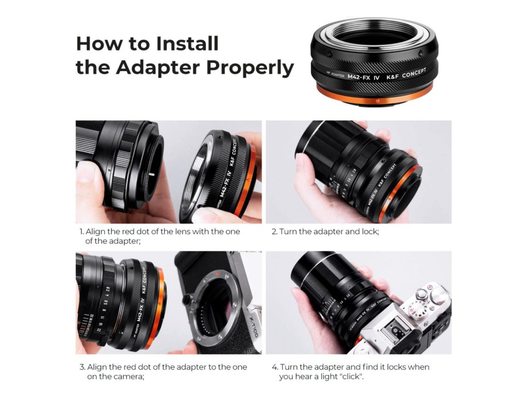 Obiectiv din seria K&F Concept M42 pentru aparatul foto din seria Fuji X M42-FX IV PRO Adaptor pentru montură obiectiv K&F concept de înaltă precizie