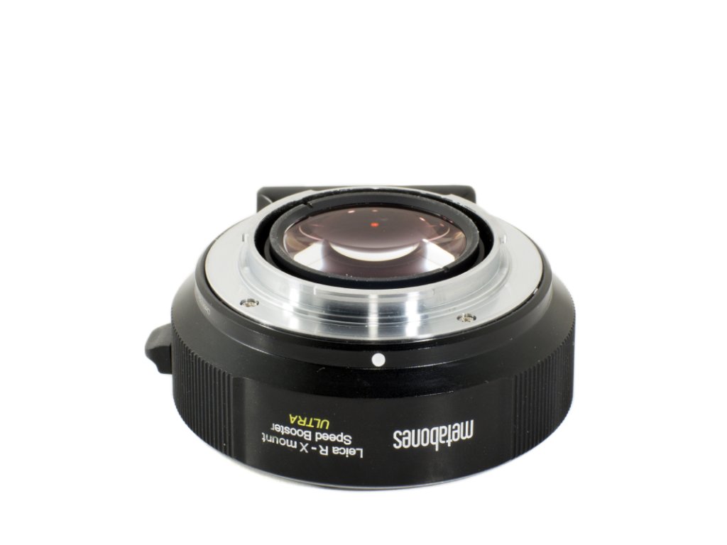 The Obiectiv Leica R pentru camera FUJIFILM X-Mount Camera Booster ULTRA din Metaoase îmbunătățește versiunea originală Metabones Speed Booster cu un design optic cu 5 elemente/4 grupuri, care prezintă sticlă pe bază de tantal cu indice de refracție ultra-înalt pentru o claritate îmbunătățită și distorsiuni și vignetare reduse. Speed Booster ULTRA vă permite să montați un obiectiv cadru complet Leica R pe o cameră cu format X-Mount APS-C și, prin urmare, crește unghiul de vedere și crește deschiderea maximă cu aproximativ un f/stop.