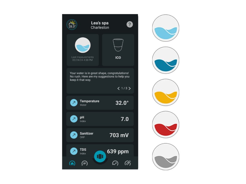 Tehnologia de ultimă oră încorporată într-un dispozitiv de design durabil se va balansa subtil pe suprafața zonei dvs. de apă relaxantă și veți obține o imagine de ansamblu perfectă și previziuni personalizate pentru piscina dvs., astfel încât să vă puteți bucura de fiecare dată de baia perfectă.