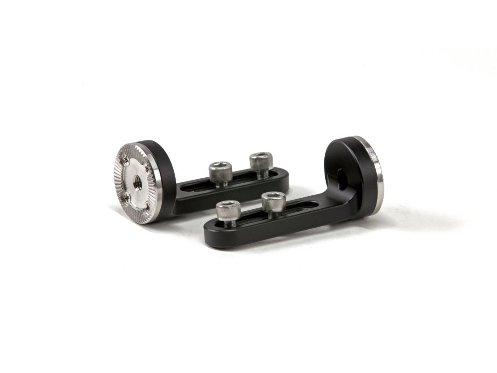 Aceste conexiuni standard pentru rozete Arri se atașează la găurile de montare de 1/4"-20, permițându-vă să atașați accesorii pe bază de rozetă la o varietate de suprafețe bazate pe 1/4"-20, inclusiv cuști pentru camere sau monitoare care nu au deja un rozetă. conexiuni