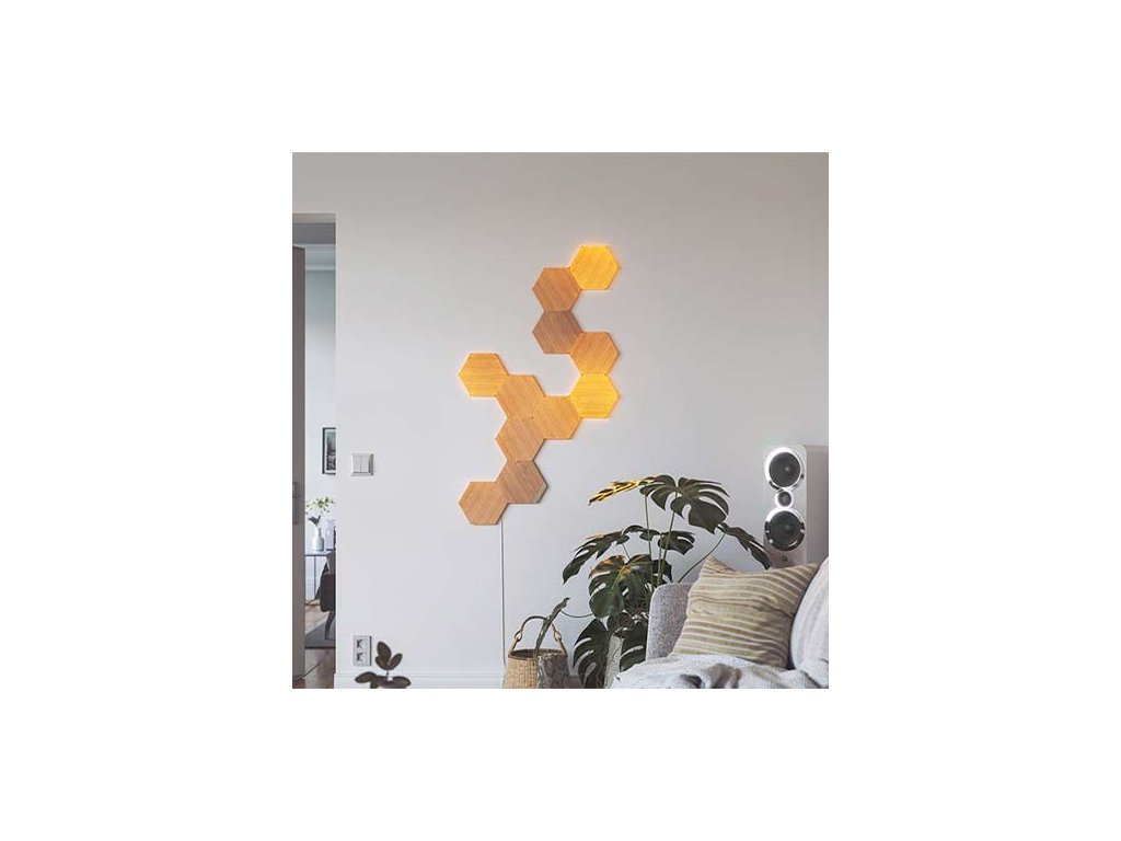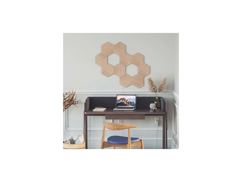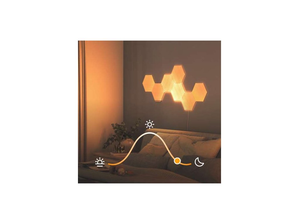 Iluminat modular inteligent - set de extindere din 3 panouri luminoase Panourile din lemn sunt concepute pentru a oferi casei tale o senzație elegantă și naturală. Alegeți dintre iluminarea caldă și rece pentru a vă ilumina spațiul cu o strălucire naturală. Făcut pentru a arăta superb pe și dezactivat. Creați-vă propriul design și efecte de iluminare. - extindere a 3 panouri luminoase la setul de baza - efecte de lumină impresionante ale șemineului mocnit, cascadei și multe altele - tonuri de culoare albă ambientală în nuanțe reci și calde (1500 K - 4000 K) - posibilitatea de a conecta efectele de lumină cu muzica (Music Sync) - stabilește o atmosferă plăcută de relaxare, susține-ți creativitatea, faci trezirea sau adormirea mai ușoară cu setări personalizate - iluminare circadiană pentru trezire naturală prin creșterea treptată a intensității luminii - control tactil prin atingere pe panou - posibilitate de control direct pe panouri sau prin intermediul aplicației (iOS, Android) - configurare simplă rapidă - instalare cu bandă adezivă cu două fețe (inclusă în pachet) sau șuruburi (nu sunt incluse în pachet) - posibilitate de extindere prin panouri suplimentare (pana la 22 panouri hexagonale/42W) Pachetul conține: - 3 panouri luminoase din lemn in forma de hexagon - 3 plăci de montare - 4 bucăți de bandă adezivă cu două fețe pentru asamblare - 3 legături pentru conectarea panourilor și controlerului - Ghid de inițiere rapidă * nu include controler și alimentare. Setul este o extensie a unui obiect de iluminat deja existent.Parametri suplimentari