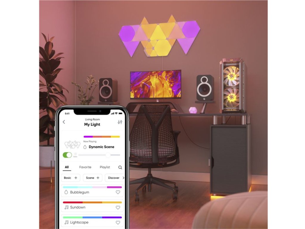 - Control flexibil cu atingere, asistenți vocali, aplicația Nanoleaf, controler manual și multe altele.
