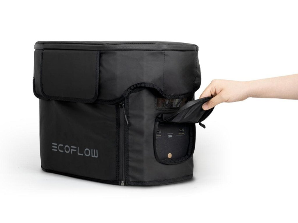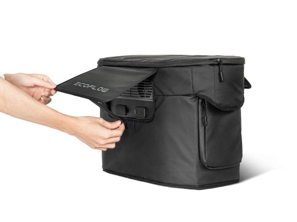 Geanta de transport pentru EcoFlow DELTA Max cântărește doar 0,48 kg și protejează stația de apă, murdărie și daune externe. De asemenea, permite accesul convenabil la toți conectorii. Este realizat din material ușor și durabil, iar datorită părții transparente a afișajului LCD, puteți vedea întotdeauna întregul dispozitiv.