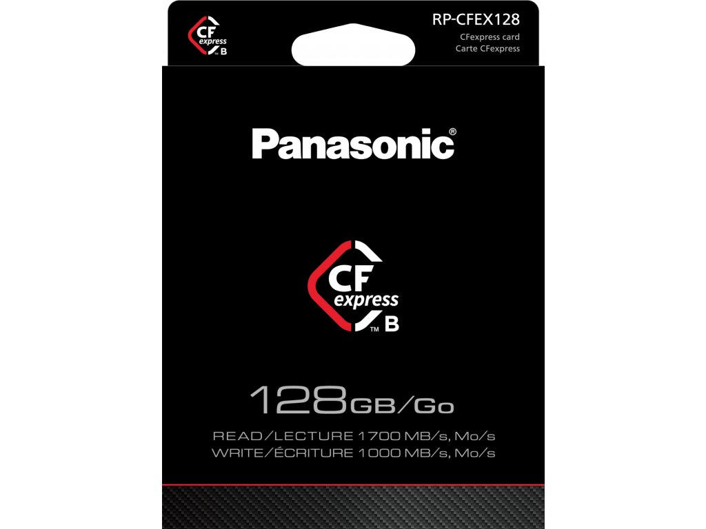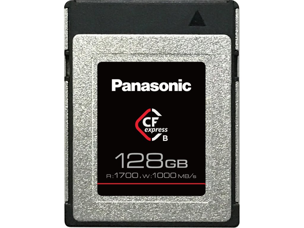 Card profesional CFexpress de 128 GB de la Panasonic cu viteză mare de citire/scriere concepută pentru utilizare pe termen lung și înregistrare sigură.