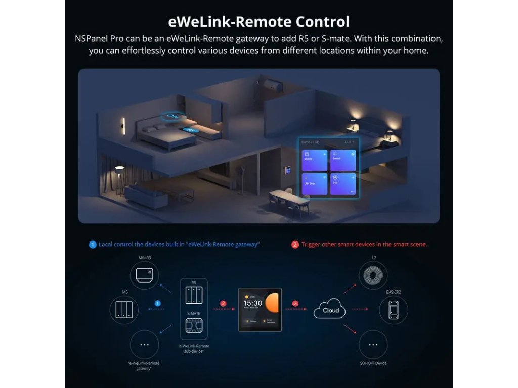 Panou de control inteligent pentru casă SONOFF NSPanel Pro, 86 mm (tip UE), gri închis
