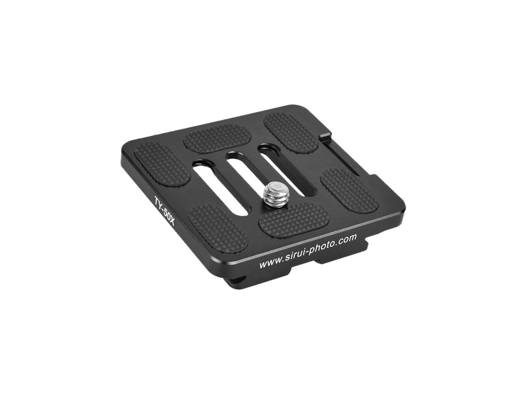 Placă cu eliberare rapidăSirui TY-50X este fabricat din forjataliaje de aluminiu. Tehnica de forjare creează metale de înaltă densitate care au o rezistență mult mai mare decât utilizarea metodei de turnare.Placa are standardcu un șurub filetat 1/4", care permite atașarea la camerele digitale. Are o suprafata cauciucata pentru a preveni alunecarea accidentala si estecompatibil cu sistemul Arca-Swiss (de ex. cu capete de trepied Sirui).