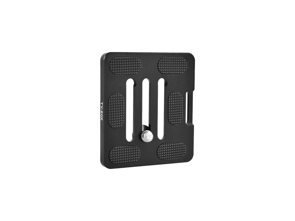 Placă cu eliberare rapidăSirui TY-60X este fabricat din forjataliaje de aluminiu. Tehnica de forjare creează metale de înaltă densitate care au o rezistență mult mai mare decât utilizarea metodei de turnare.Placa are standardcu un șurub filetat 1/4", care permite atașarea la camerele digitale. Are o suprafata cauciucata pentru a preveni alunecarea accidentala si estecompatibil cu sistemul Arca-Swiss (de ex. cu capete de trepied Sirui).