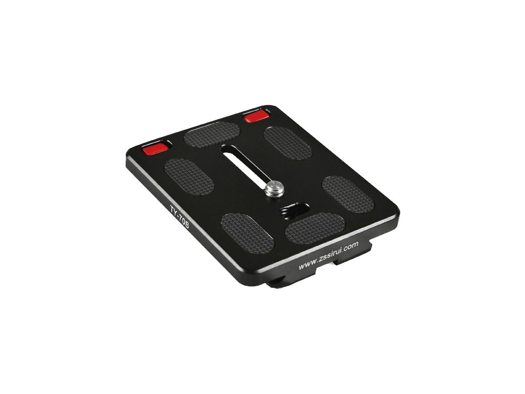 Placă cu eliberare rapidăSirui TY-70-2 este fabricat din forjataliaje de aluminiu. Tehnica de forjare creează metale de înaltă densitate care au o rezistență mult mai mare decât utilizarea metodei de turnare.Placa este echipată cu un standardcu un șurub filetat 1/4" pentru atașarea la camerele digitale. Suprafața sa estecauciucat, Pentru a preveni alunecarea accidentală. Placa este compatibilă cu sistemulArca-Swiss.