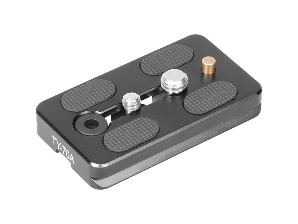 Placă cu eliberare rapidăSirui TY-70A este fabricat din forjataliaje de aluminiu. Tehnica de forjare creează metale de înaltă densitate care au o rezistență mult mai mare decât utilizarea metodei de turnare. Placa este echipatacu șuruburi filetate 1/4" și 3/8" pentru atașarea la camerele digitale. Suprafața sa estecauciucat, Pentru a preveni alunecarea accidentală. Placa este compatibilă cu sistemulArca-Swiss.Parametri tehnici: