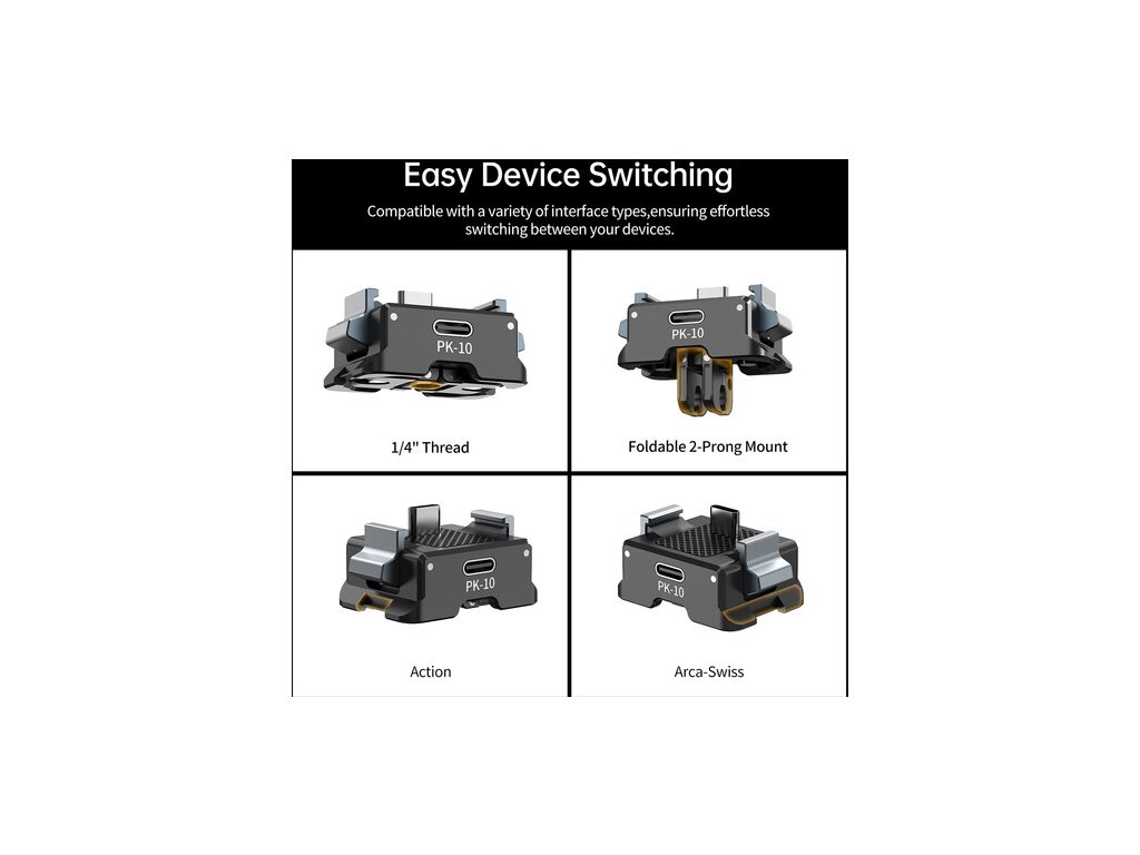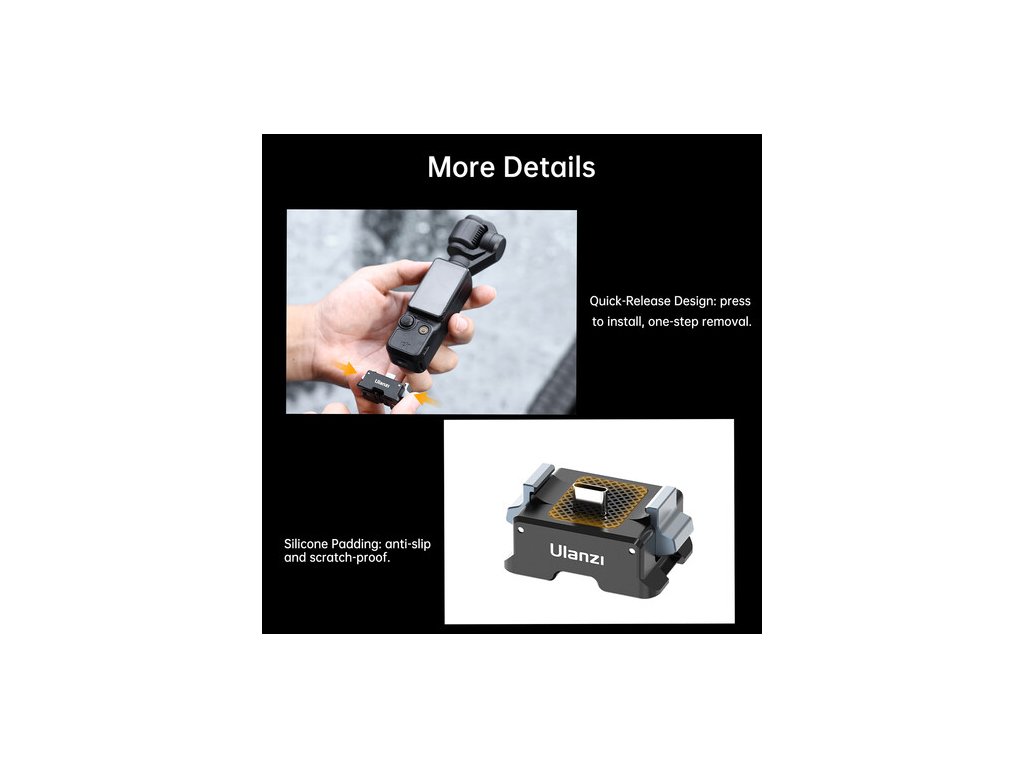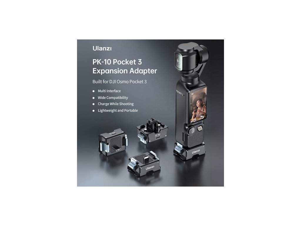 Bază USB-C Ulanzi PK-10 pentru DJI Osmo Pocket 3 - suport din aliaj de aluminiu cu 2 pini și port de încărcare pass-through, design magnetic cu comutare rapidă, ultra-ușoară de 30g pentru filmare fără probleme din mers.