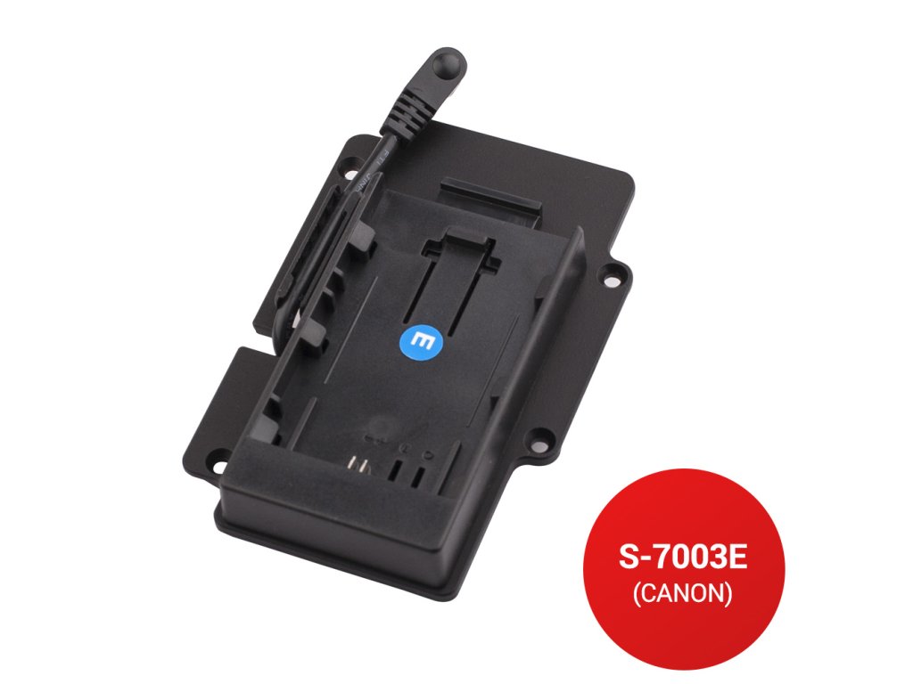 Bateria Canon LP-E6 cu un conector de alimentare destinat instalării pe spatele monitorului SWIT S-1053F permite monitorului să fie alimentat de o baterie compatibilă Canon LP-E6.