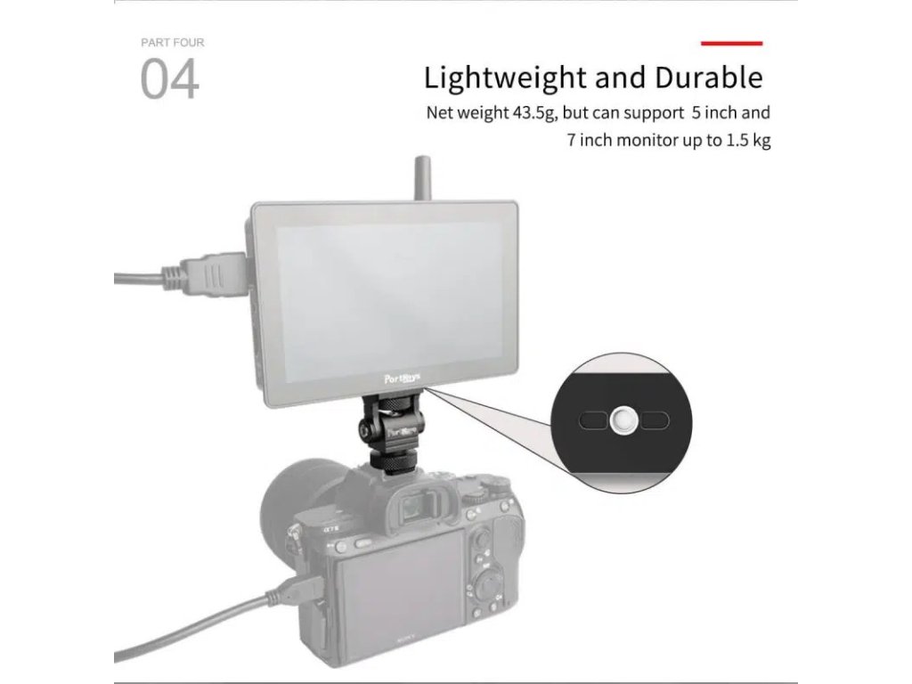 Greutate netă 43,5 g, dar poate suporta monitoare de 5 inchi și 7 inchi cu o greutate de până la 1,5 kg (sarcină utilă maximă: 3 lbs 4,9109 oz)05 Butonul filetat este fixat mai ferm