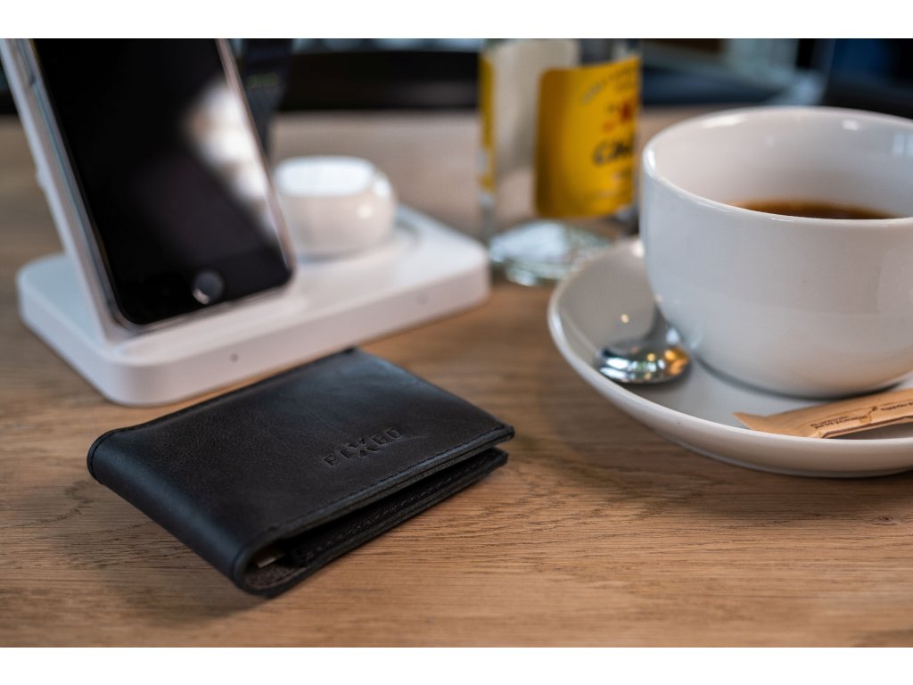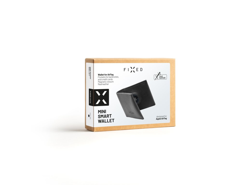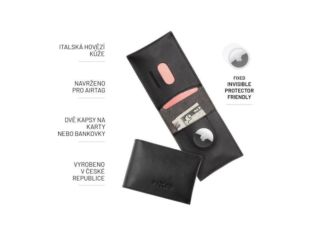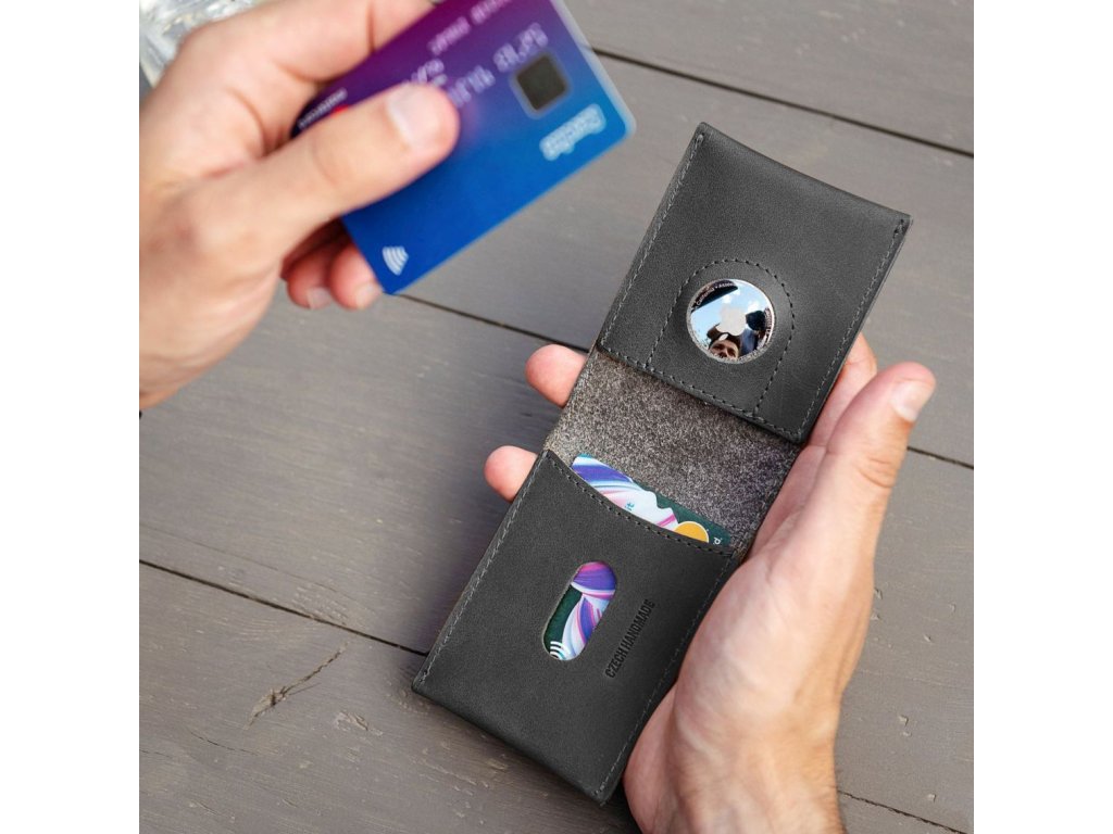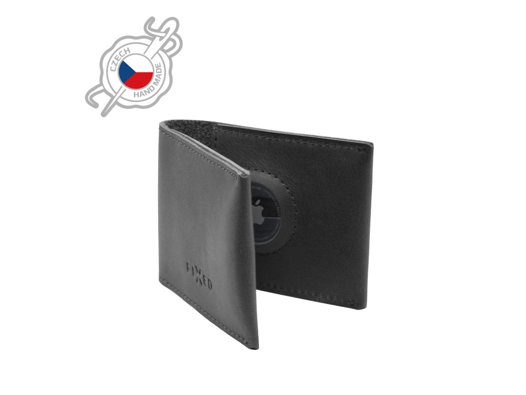 Portofel din piele Portofel FIX pentru AirTag din piele de vacă autentică, (negru)