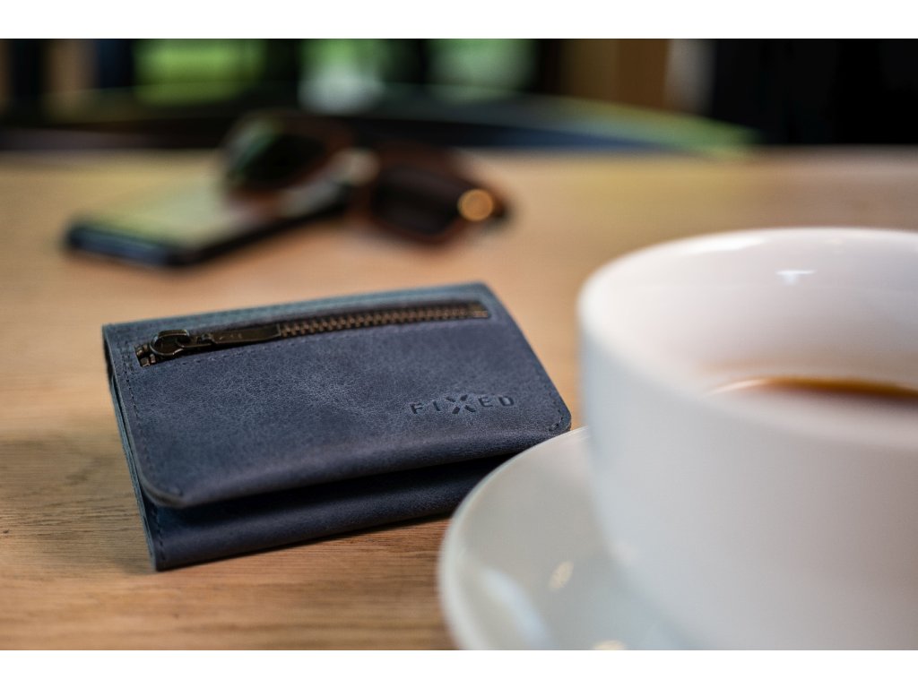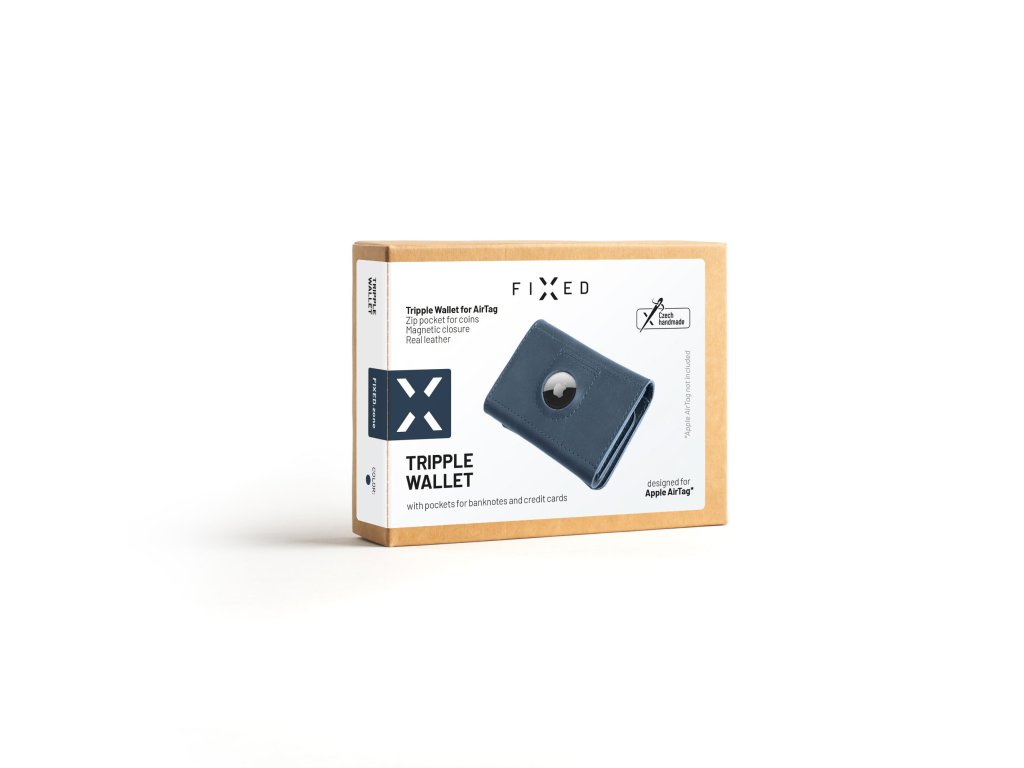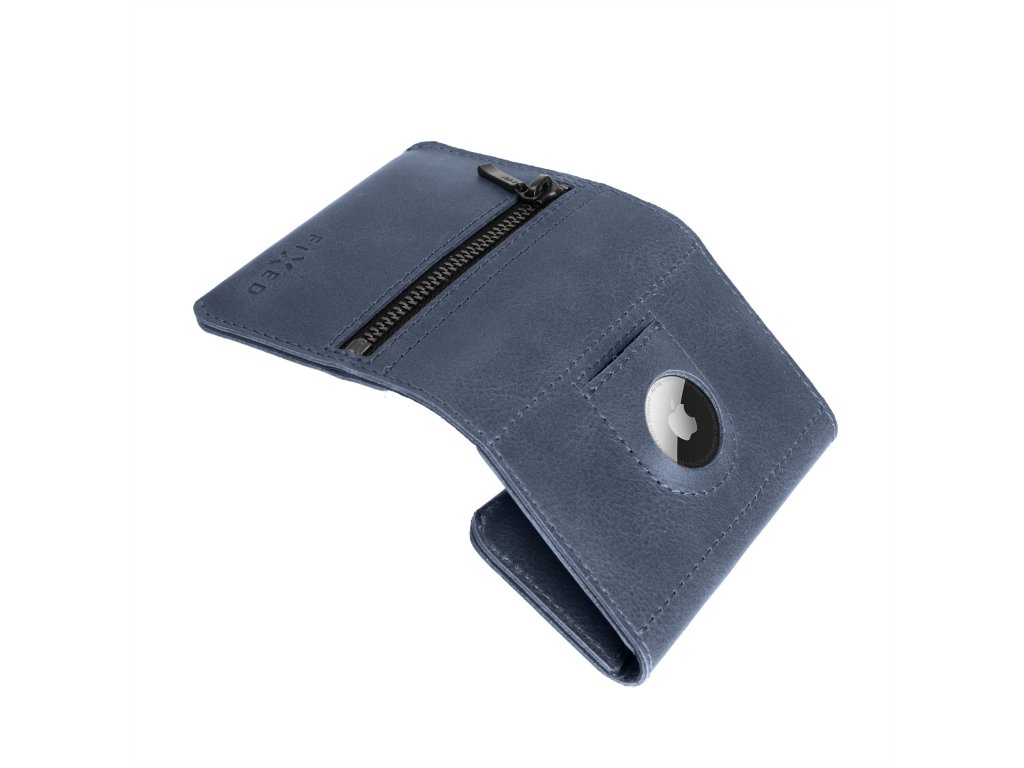 Portofel din piele Portofel triplu FIX pentru AirTag din piele de vacă autentică, (albastru)