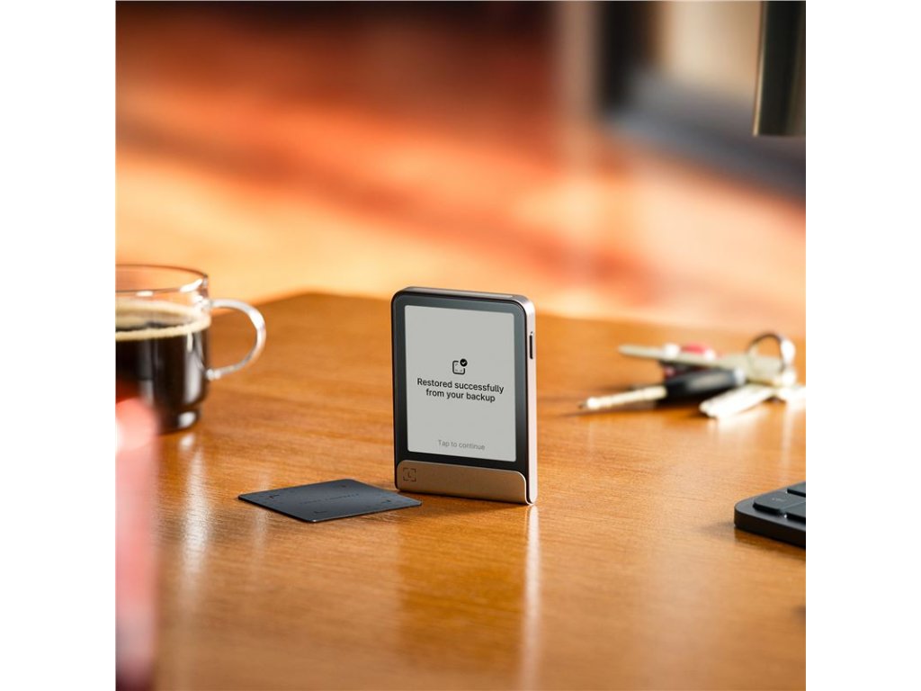 Vizualizați instantaneu toate tranzacțiile dvs. cripto dintr-o privire și semnați-le cu ușurință cu Clear Sign pe un ecran tactil securizat E Ink care se potrivește confortabil în mână și buzunar.