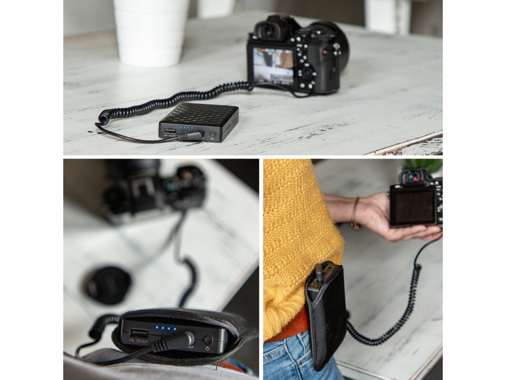 Dispozitivul este echipat cu o ieșire DC de curent mare cu un cablu dedicat - adaptor baterie. Eficiența energetică ridicată vă permite să creșteți numărul de fotografii realizate în timpul sesiunii sau al timpului de înregistrare video, fără a fi nevoie să înlocuiți bateriile. Mobilitate Portul USB încorporat vă permite să încărcați multe alte dispozitive portabile (de exemplu, playere muzicale, console portabile sau smartphone-uri). Datorită ergonomiei sale, banca de energie Newell este mobilă, ușoară și ușor de utilizat. Datorită capacului inclus, unitatea de alimentare poate fi atașată de cureaua pantalonilor sau de un trepied. Design atent Un microprocesor încorporat protejează bateria împotriva supraîncălzirii și supraîncărcării. Cu indicatoarele LED de alimentare, nu veți fi niciodată surprins de o pană de curent. Bateria încorporată este încărcată printr-un port micro USB (de exemplu, încărcătorul de telefon). Specificatii - capacitate: 7800 mAh - intrare: micro USB 5 V; 2 A - iesiri: USB 5 V; 2,1 A / DC 7,2-8,4 V; 2 A (max) - dimensiunile powerbank: 11 x 2 x 7 cm - cablu spiralat cu lungimea de 30 cm care se extinde pana la max. 90 cm - greutate: 217 g (fără capac) Compatibilitate - Dispozitive NP-FZ100 alimentate cu baterie Sony A7 III, A9 - smartphone-uri, tablete și alte echipamente compatibile USB Conținutul setului - power bank - cablu de alimentare cu adaptor pentru baterie NP-FZ100 - Cablu de alimentare USB la micro USB (nu este inclusă sursa de alimentare) - husă pentru curea cu atașare pentru centurăParametri suplimentari