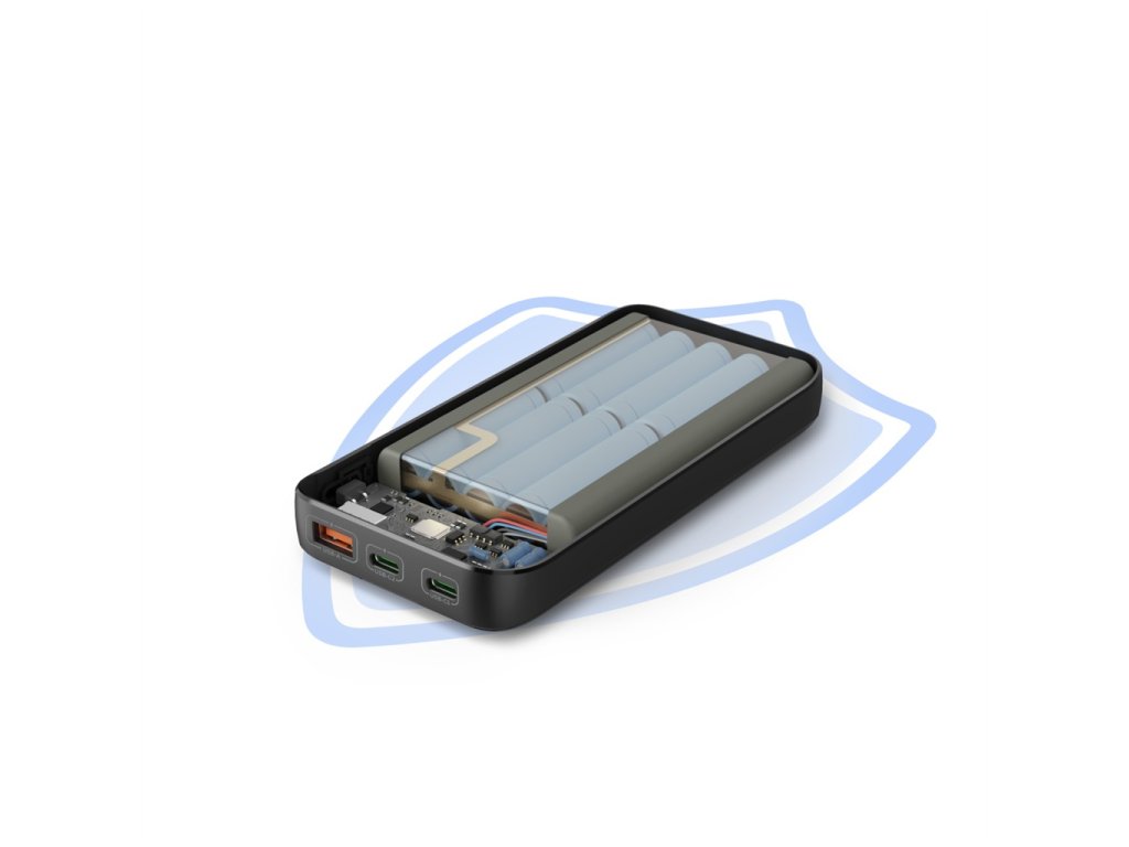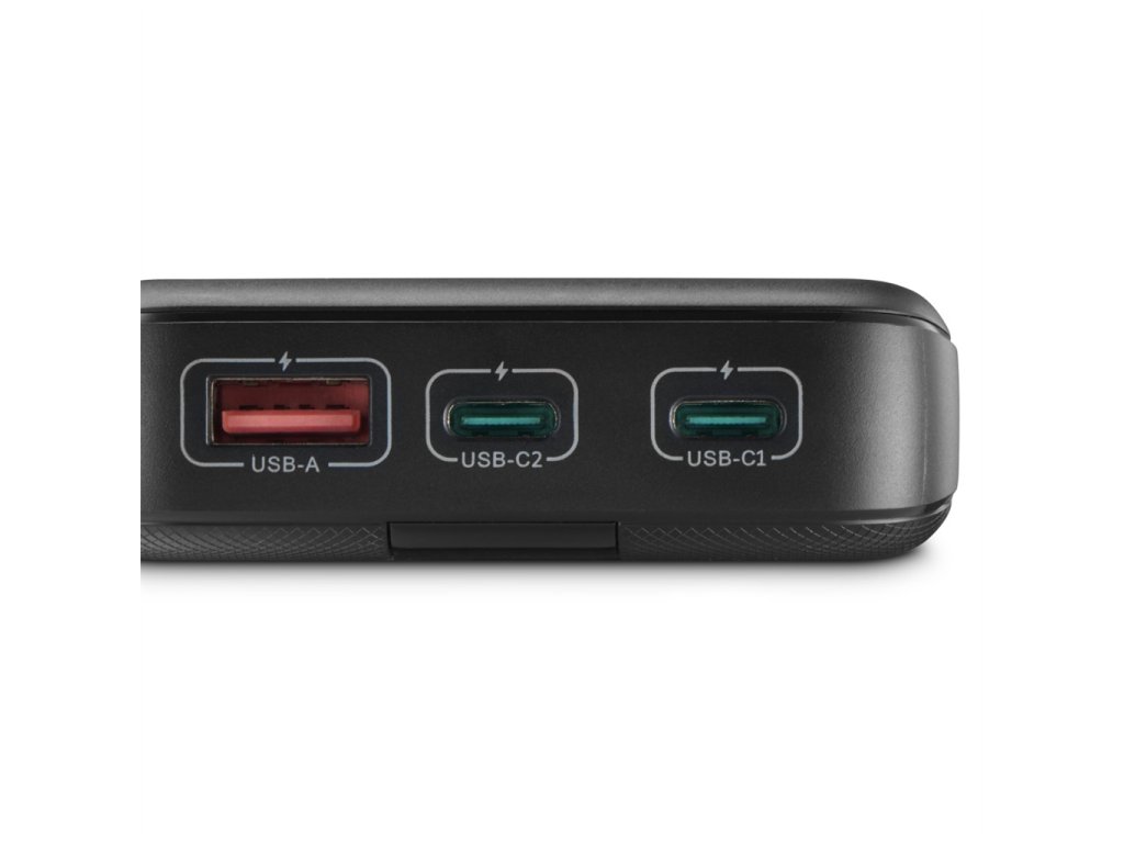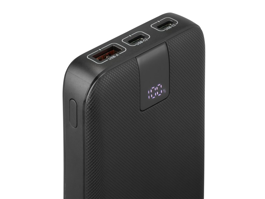 - sursă de alimentare externă universală pentru telefoane mobile, tablete, difuzoare Bluetooth și alte dispozitive portabile - sursă de alimentare ideală pentru călătorii, design compact de călătorie - Imediat gata de utilizare - Power Delivery și tehnologia Qualcomm® Quick Charge™ 3.0 pentru încărcare extrem de rapidă (mai rapidă decât cu tehnologiile convenționale de încărcare) - celulele licențiate garantează cele mai înalte standarde de siguranță, calitate superioară și protecție împotriva supraîncărcării, supratensiunii, supraîncălzirii, descărcării excesive și scurtcircuitelor - procesul de încărcare optimizat economisește bateria și îi prelungește durata de viață - incarcare usoara a powerbank in 6,5 ore prin conectorul USB-C - Afișaj LED care arată starea de încărcare a bancului de alimentare - potrivit pentru bagajele la bordul avionului - pachetul include un cablu de incarcare USB-C -> USB-C cu lungimea de 30 cm - 2 intrări: 2x USB-C - 3 iesiri: 2x USB-C, 1x USB-A - culoare: antracit - ambalaje din hârtie fără conținut de plasticÎnștiințare: