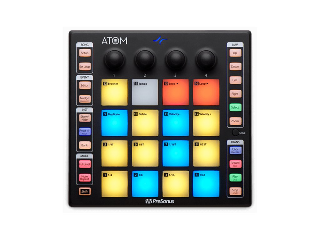 Captați ritmul oricând și oriunde cu PreSonus® ATOM. Un controler de pad MIDI intuitiv, muzical, pad-urile dinamice și ultra-responsive ale ATOM vă oferă toată expresia de care aveți nevoie, fie că creați un beat, creați o linie de sintetizatoare de conducere sau declanșați efecte sonore și bucle din mers. Integrarea strânsă cu Studio One® și Ableton® Live înseamnă că veți rămâne inspirat fără să pierdeți nicio ritm. Te vei concentra în afara ecranului și asupra performanței tale - acolo unde contează cel mai mult.