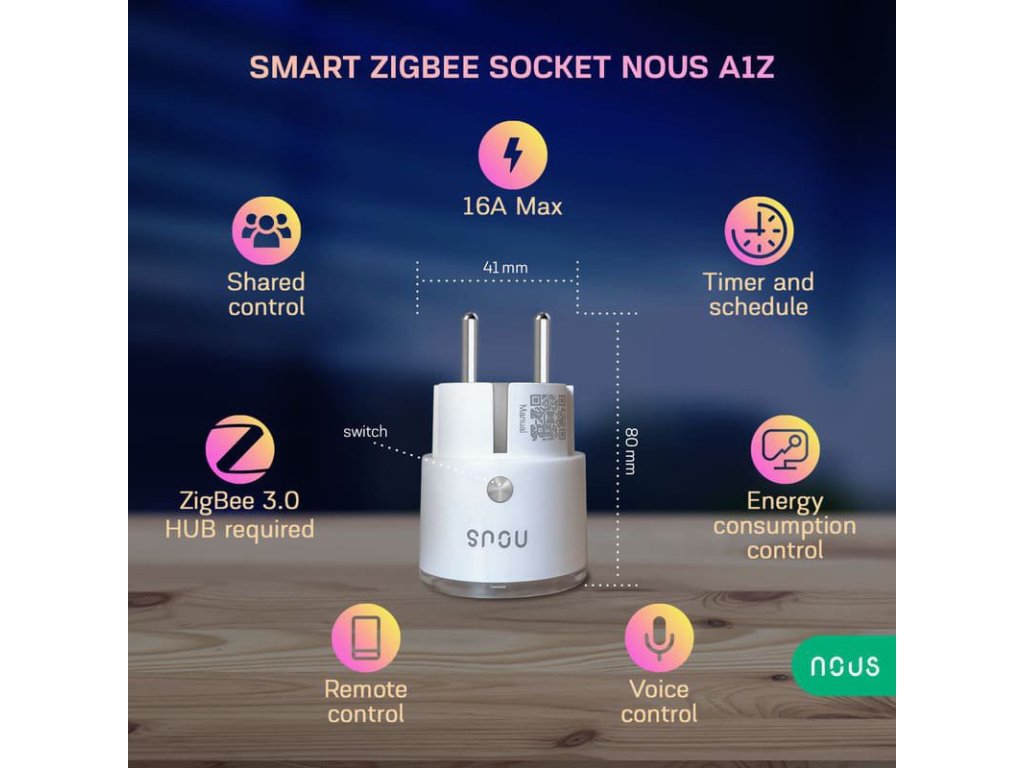 Priză inteligentă Nous A1Z Zigbee până la 15A
