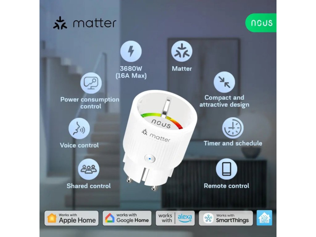 Priză inteligentă Nous A8M Matter 16A (WiFi) (4 bucăți)