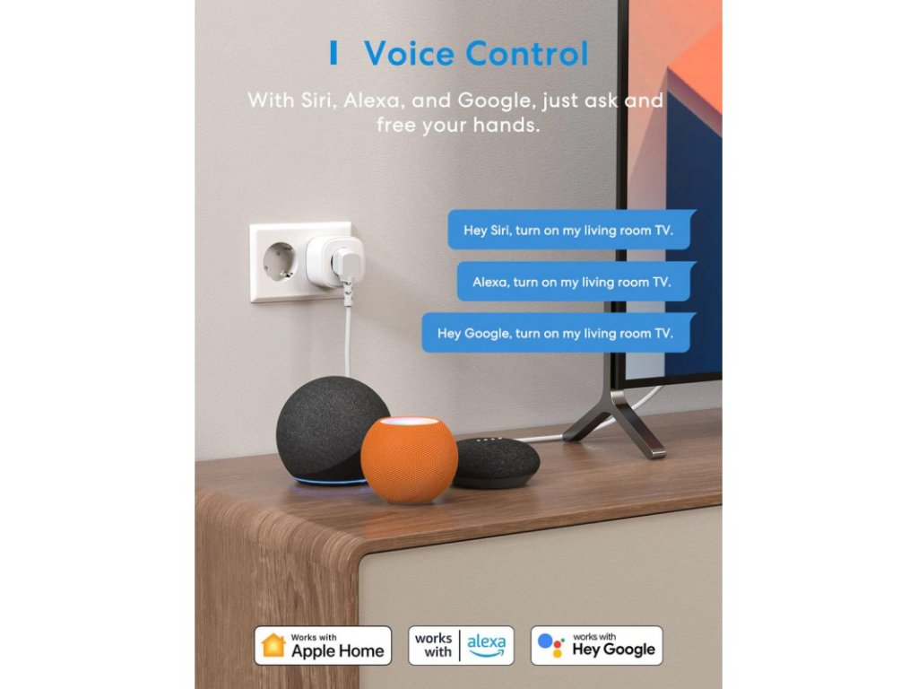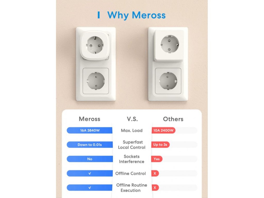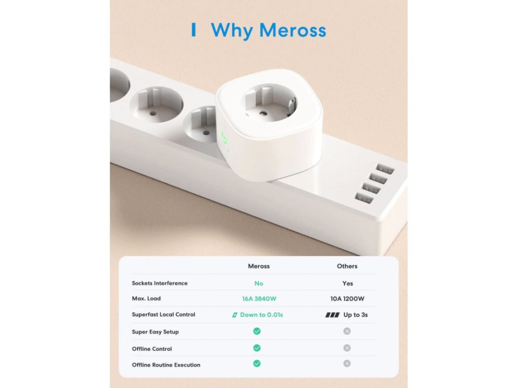 Priză inteligentă Wi-Fi Meross, MSS210HK, 2 buc (versiunea UE)