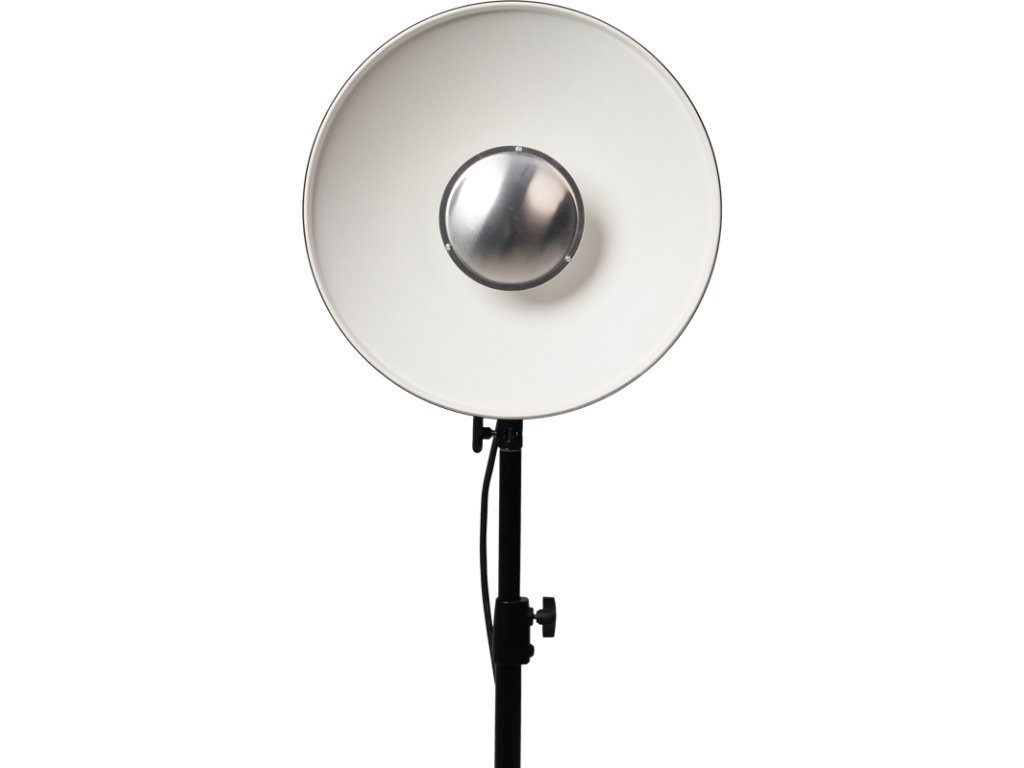Interiorul bolului cosmetic cu textură de coajă de portocală asigură o distribuție uniformă a luminii prin reflectarea acesteia pe o placă deflector centrală și apoi reflectarea ei în exterior. Acest design unic elimină punctele fierbinți și creează un efect delicat, învăluitor, în jurul subiectului. Pentru o atingere și mai subtilă, se poate atașa difuzorul inclus, obținând un aspect radiant și natural, ideal pentru portrete profesionale.Control și precizie la fiecare lovitură