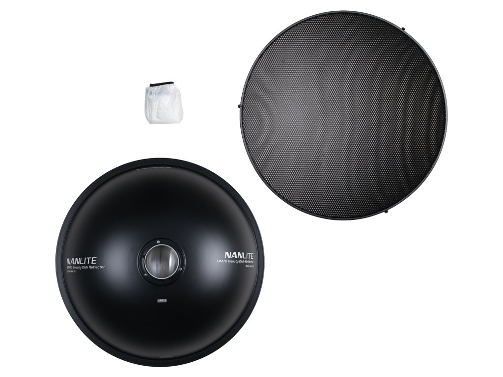 Suprafața mai mare a BM70 îi sporește capacitatea de a crea o lumină blândă și distribuită uniform, care învăluie subiectul într-o strălucire măgulitoare. Interiorul cu textură de coajă de portocală, combinat cu placa deflectoră, asigură eliminarea luminilor puternice, menținând în același timp o strălucire naturală, ideală pentru portretele care necesită un aspect blând și rafinat.Control îmbunătățit al fasciculului pentru efecte artistice